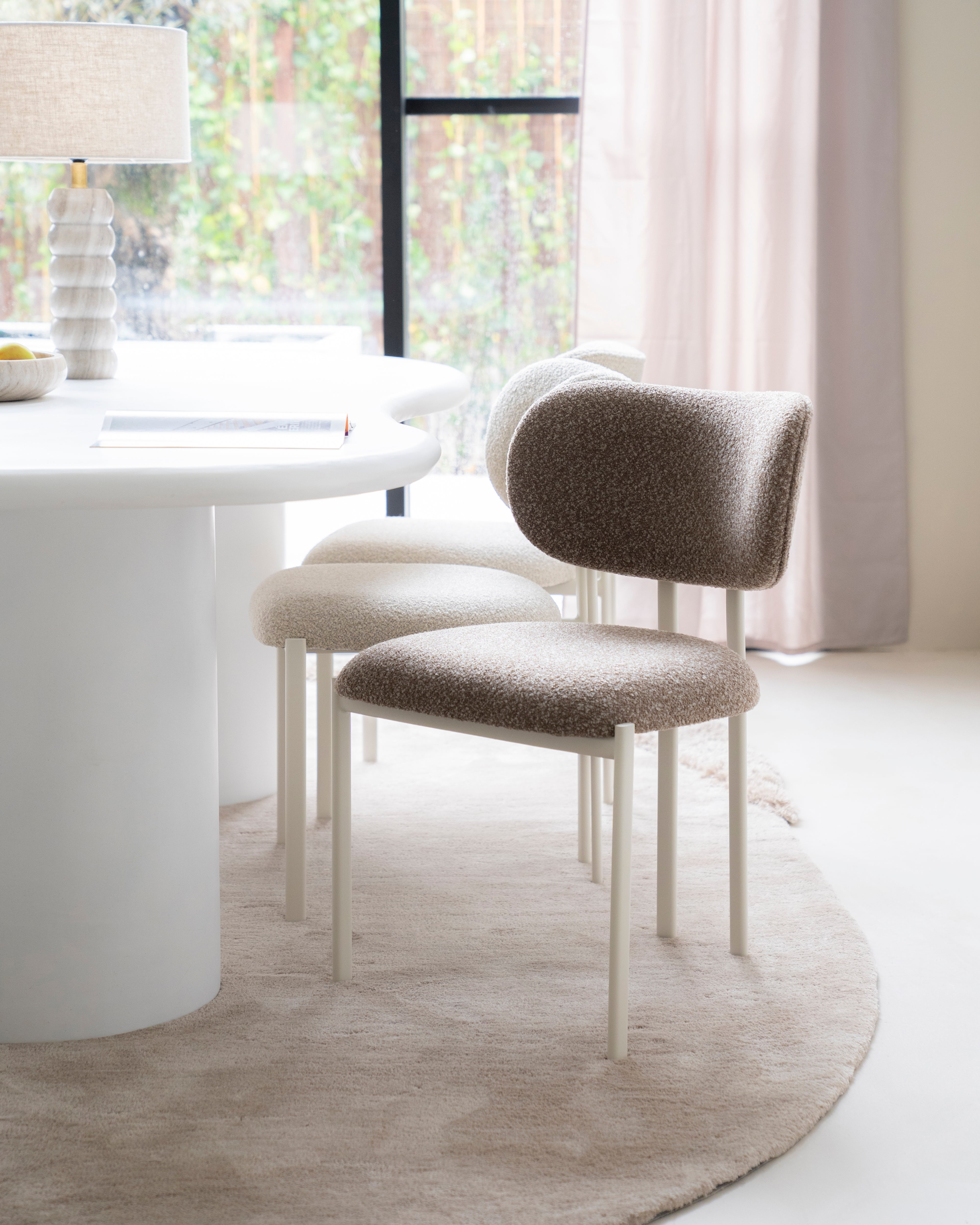 Der Stuhl Daybreak ist eine Kombination aus minimalistischer Konstruktion und subtiler Eleganz, ideal für moderne Innenraumgestaltungen. Der stabile Rahmen aus Metall in heller Ausführung harmoniert perfekt mit dem weichen Bezug aus Cloud-Stoff, der dem Gesamtbild eine gemütliche Note verleiht. Die schlichte Form, ergänzt durch eine bequeme Rückenlehne und Sitzfläche, garantiert Komfort bei täglichen Mahlzeiten, der Arbeit oder Treffen.