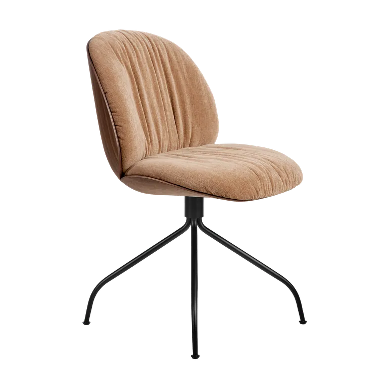 Drehstuhl BEETLE SOFT gepolstert mit Nussbaumholz und schwarzem Fuß