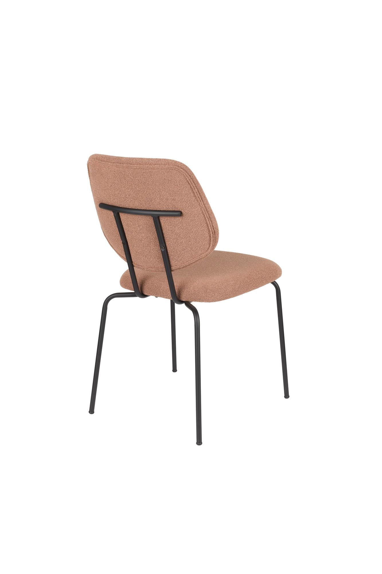 Polsterstuhl in einem warmen, rosafarbenen Farbton ist die ideale Wahl für Menschen, die einen einfachen, aber gemütlichen Stil schätzen. Dank des weichen Polyesterbezuges und der ergonomisch geformten Rückenlehne bietet das Möbelstück Komfort sowohl beim Essen als auch bei der Arbeit oder bei Meetings.