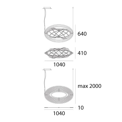 Moderne Pendelleuchte Copernico ist ein wahres Kunstwerk der Gebrauchsgestaltung, das fortschrittliche Technologie mit außergewöhnlicher räumlicher Form verbindet. Hergestellt aus einer einzigen Aluminiumplatte, besteht die Konstruktion aus neun konzentrischen Ellipsen, die sich unabhängig auf zwei Achsen drehen. Dies ermöglicht eine präzise Lichtlenkung und die Schaffung vieler räumlicher Konfigurationen, die Aufmerksamkeit erregen und den Charakter des Innenraums verändern.