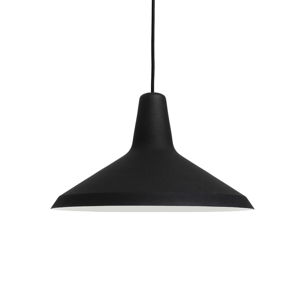 Die Pendelleuchte G-10 ist ein originales Design von Greta M. Grossman aus den 50er Jahren, das die rohe Ästhetik des industriellen Designs mit einer subtilen, femininen Linie verbindet. Der charakteristische, matte Schirm, der an einen eleganten Hut aus jener Zeit erinnert, verleiht der Lampe einen einzigartigen Charme und Stil im Raum. Sie präsentiert sich sowohl einzeln über dem Tisch als auch in der Komposition mehrerer Stücke hervorragend.