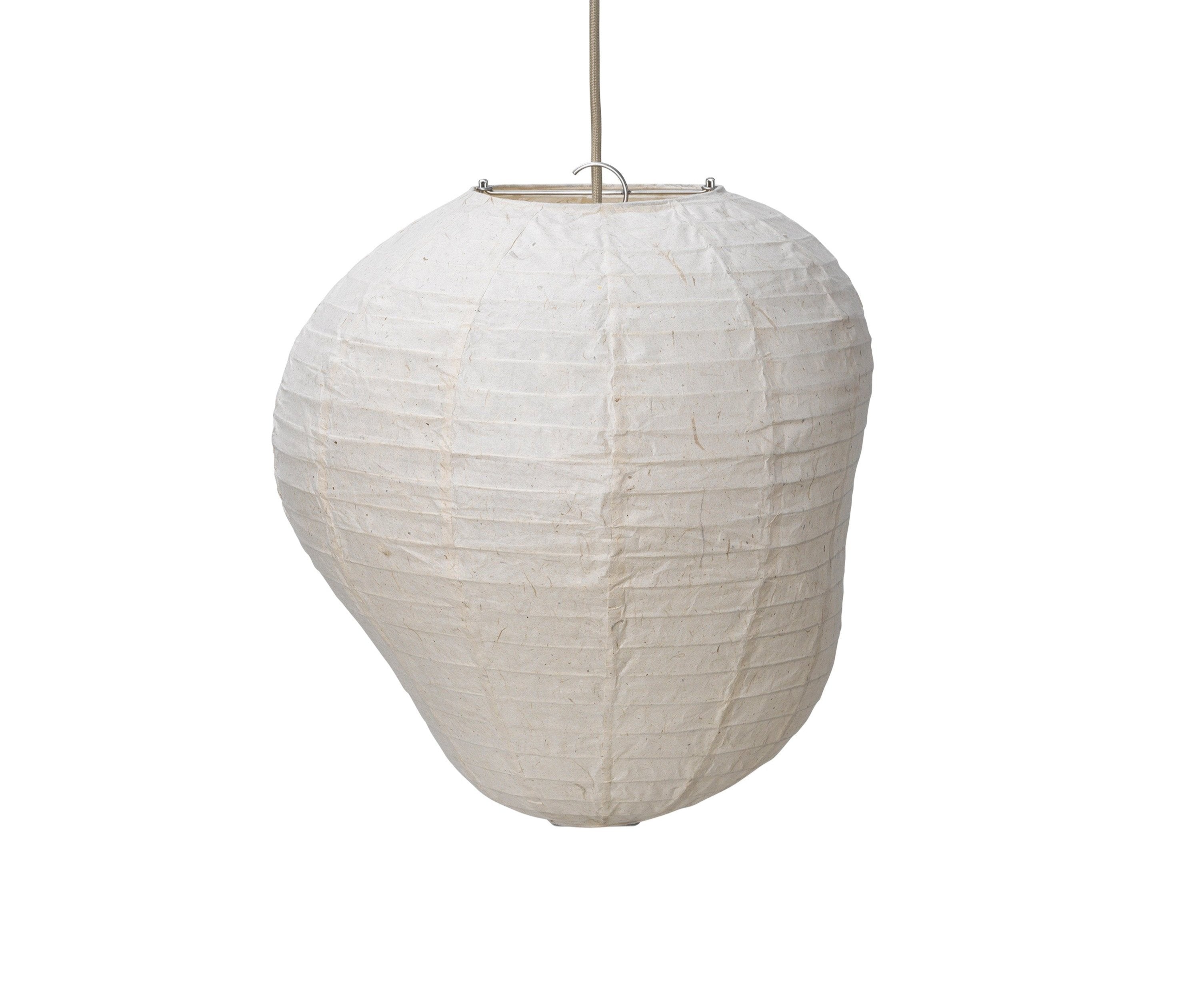 Der Lampenschirm Kurbis ist eine moderne Interpretation der klassischen Laterne aus Reispapier. Hergestellt aus charakteristischem, reichhaltigem Washi-Papier, zeichnet er sich durch eine unkonventionelle Form aus, die anstelle der traditionellen, runden Form eine organische, asymmetrische Silhouette annimmt. Inspiriert von der Familie der Kürbisgewächse, begeistert der Lampenschirm Kurbis mit seiner subtilen Ästhetik und einzigartigen Erscheinung.