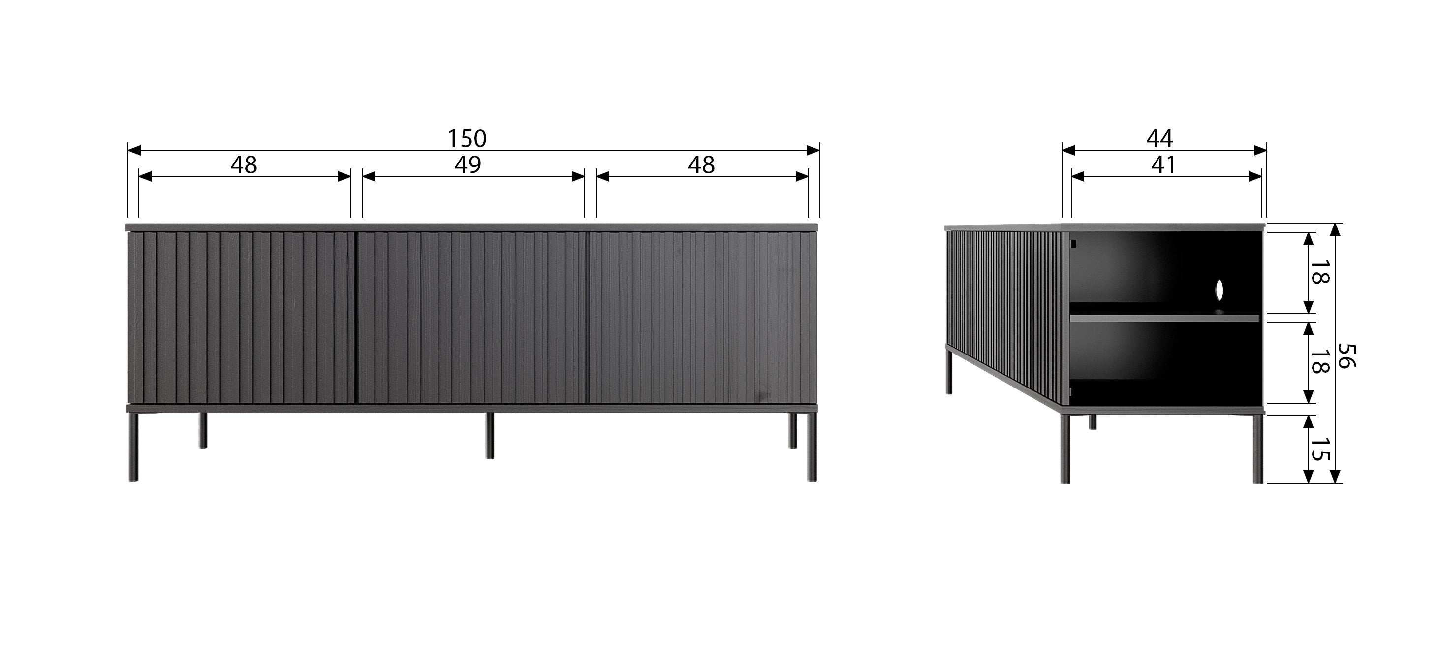 Materialien: FSC -zertifiziertes Aschenholz, Spanplatte, Metall mit schwarzer Beschichtung
