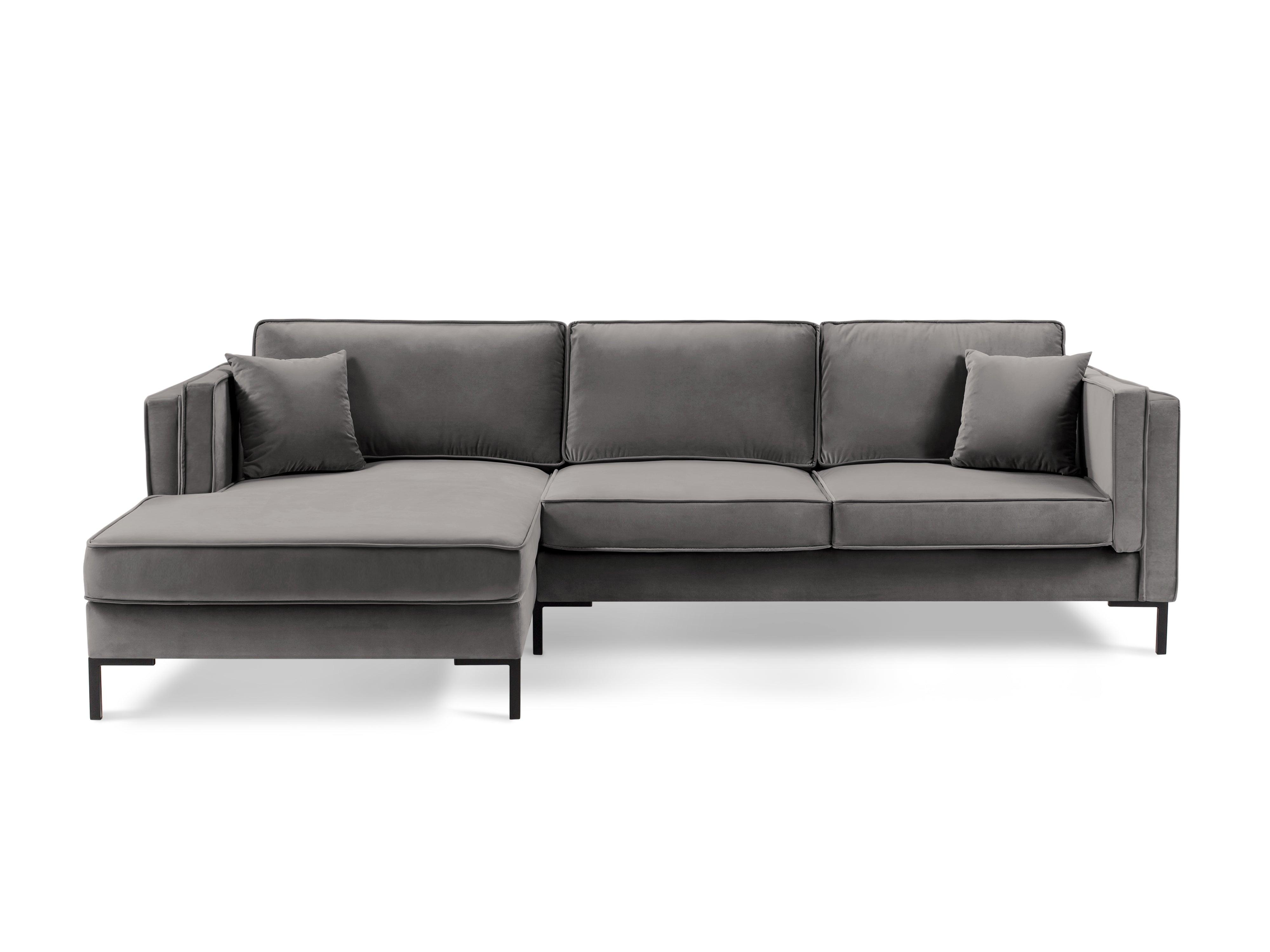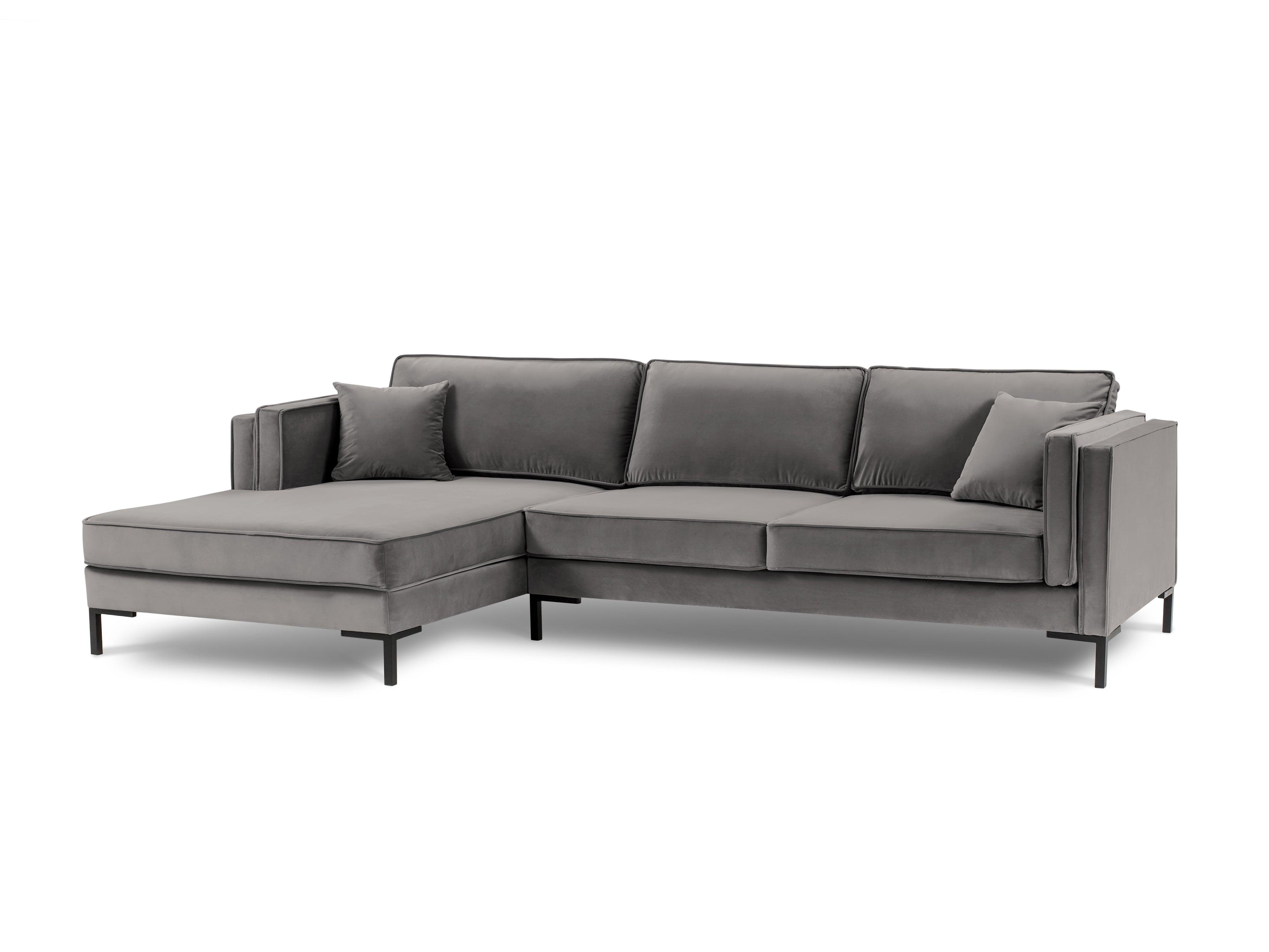 Narożnik aksamitny lewostronny LUIS jasnoszary z czarną podstawą Milo Casa    Eye on Design
