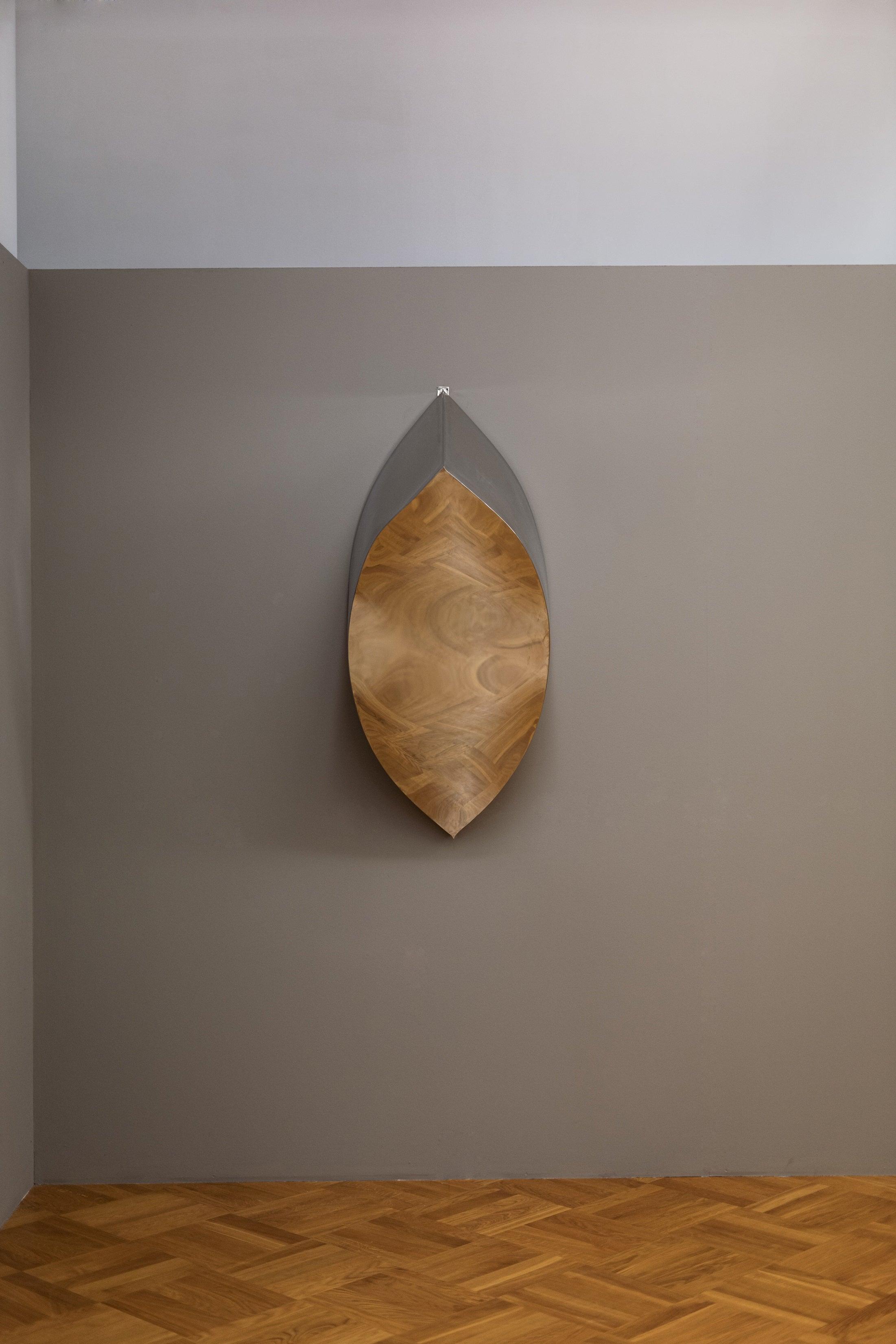 Diese ungewöhnliche Skulptur bezieht sich auf die Form, die als Vesica Pisis oder Mandorl bekannt ist, was ein Symbol für Harmonie und Gleichgewicht ist. Lezka verwandelt dieses Symbol in eine neue, faszinierende Komposition, die an der Wand lebendig wird. Seine abstrakte Form weckt das Interesse und fördert die Reflexion über die Bedeutung und Botschaft von Kunst.