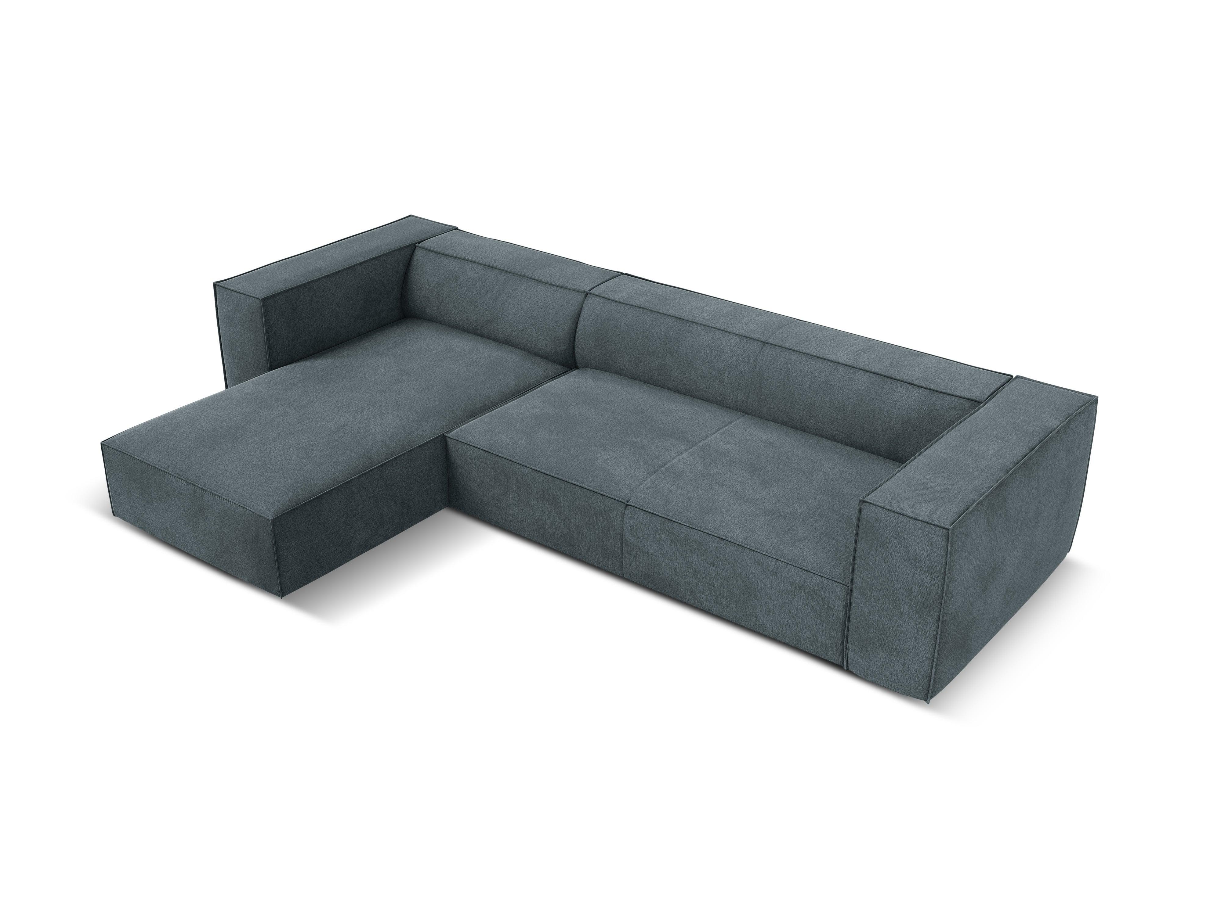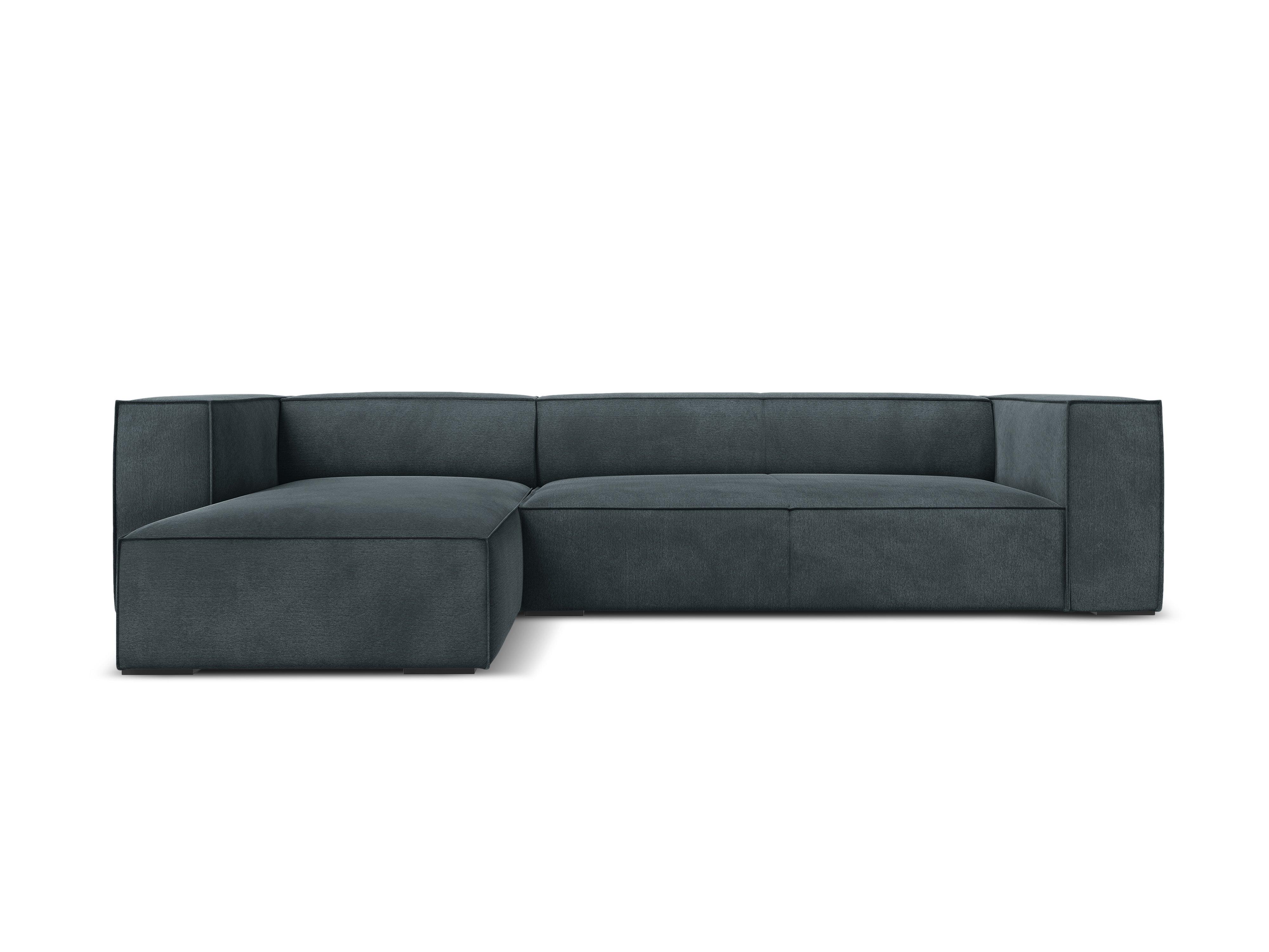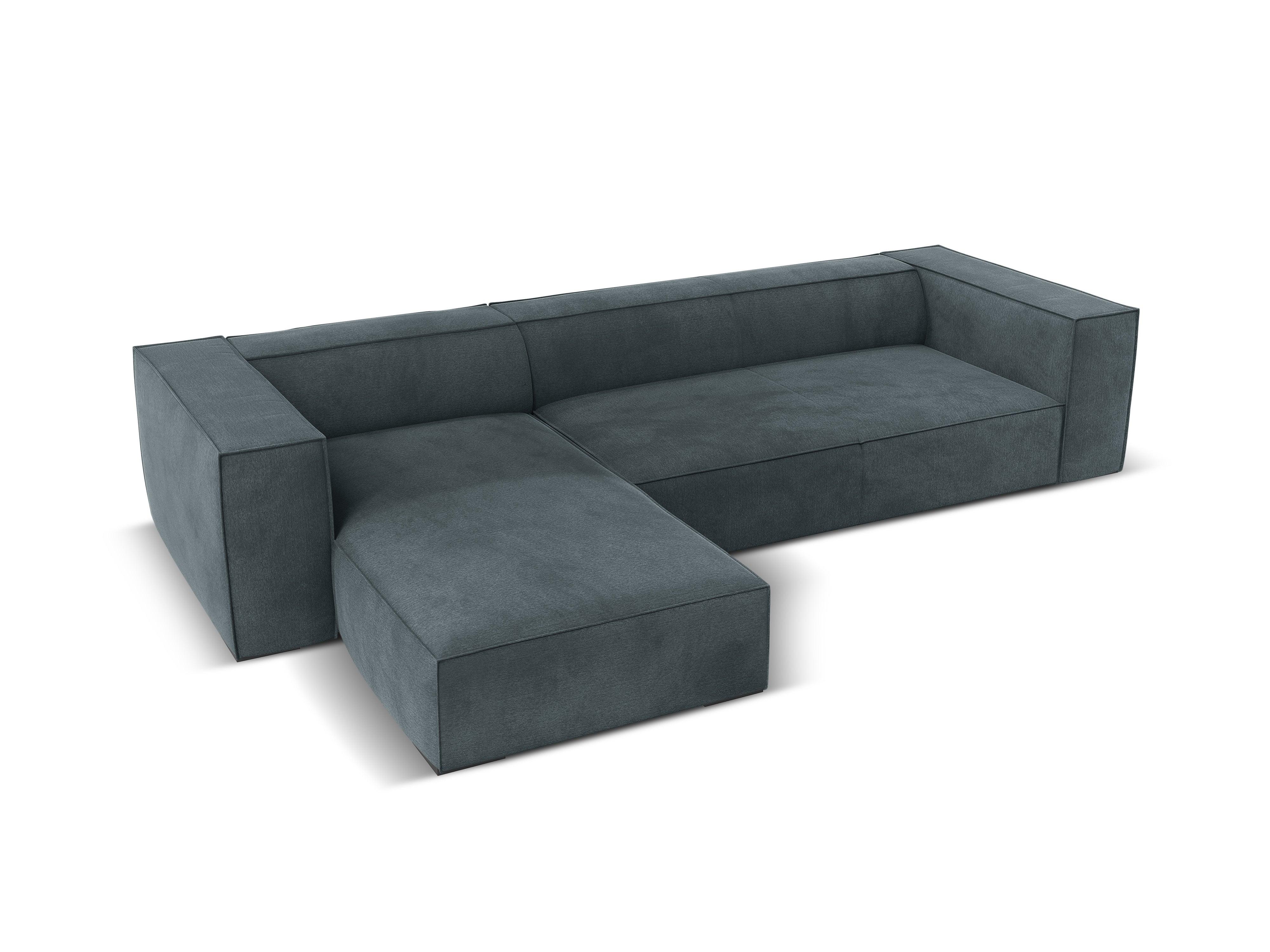 Ecksofa für vier Personen Madame mit ihrem markanten Charakter und eleganter Ausführung ist die perfekte Wahl für ein modernes Wohnzimmer. Die tiefe Sitzfläche ist sowohl ideal für gesellige Zusammenkünfte als auch für entspannende Momente nach einem langen Tag. Sie ermöglicht ein bequemes Entspannen in lockeren Positionen. Mit ihrer niedrig gehaltenen Silhouette, breiten Armlehnen und Rückenlehnen schafft sie eine gemütliche Form.