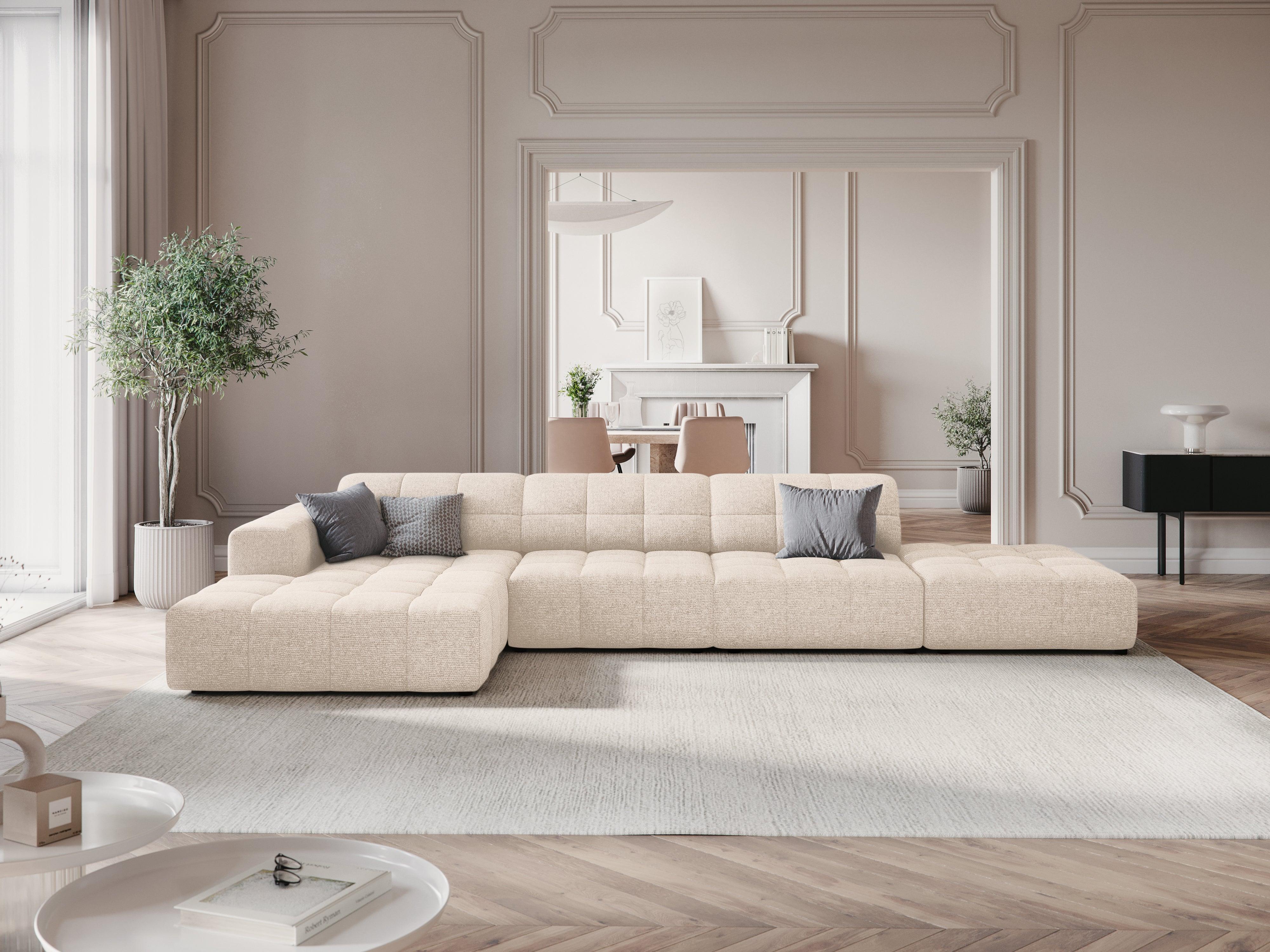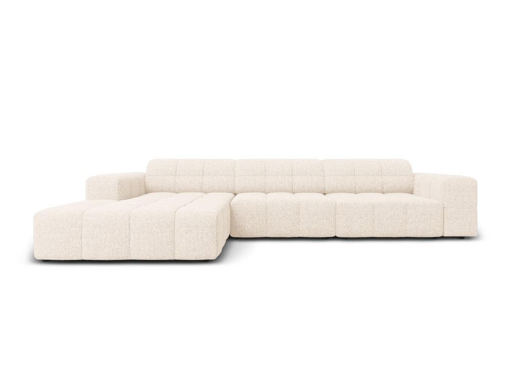 Ecksofa für vier Personen Chicago zeichnet sich durch ein außergewöhnliches Design aus, bei dem die sanft gepolsterten Sitzflächen und die zahlreichen Nähte an den Rückenlehnen dem Gesamtbild eine raffinierte Note verleihen. Die niedrige, ausladende Form strahlt außergewöhnlichen Chic aus und betont den Stil des Wohnzimmers perfekt. Die elastischen, tiefen Sitzflächen mit üppiger Polsterung garantieren nicht nur Komfort, sondern auch vollständige Entspannung nach einem langen Tag.