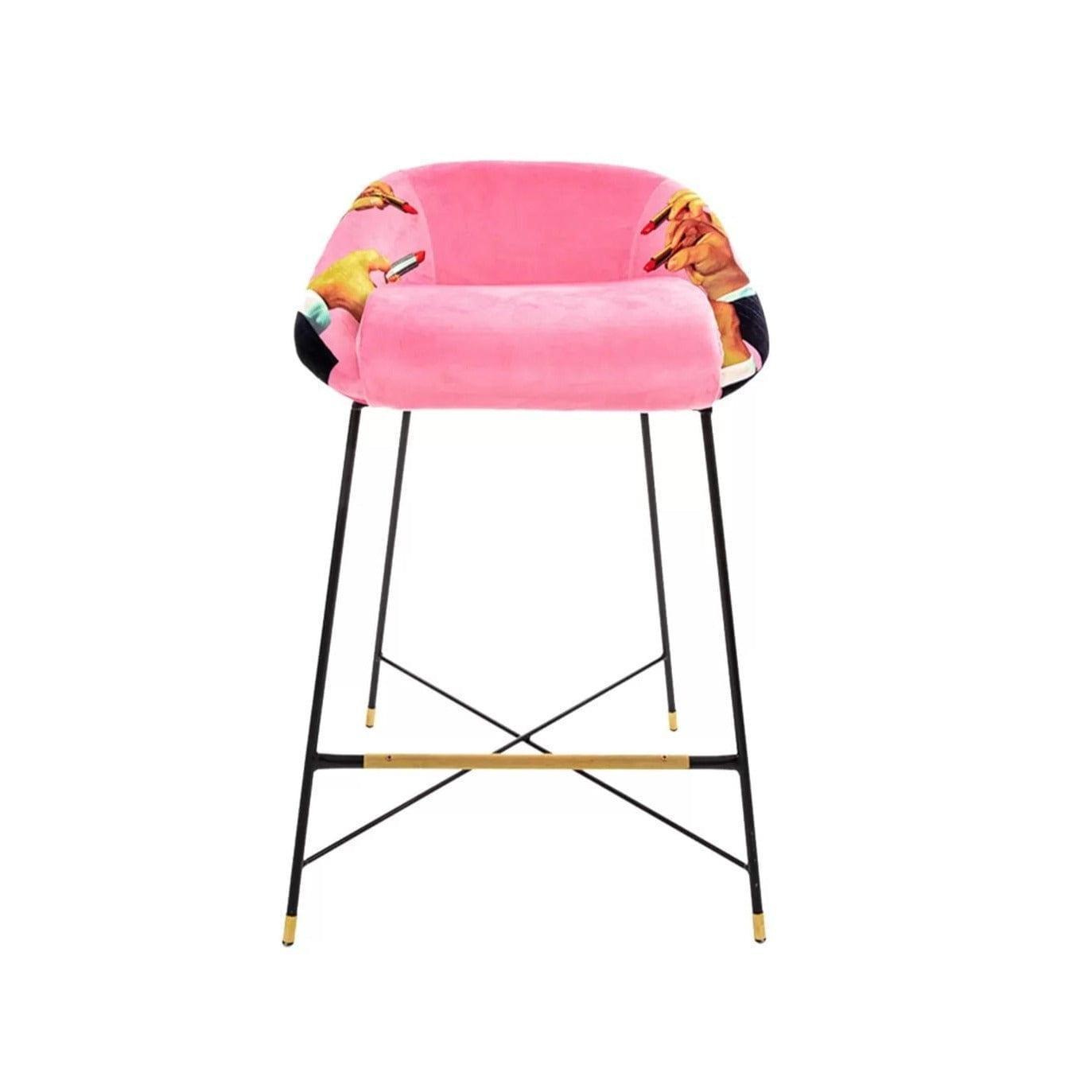 Designer Hocker Im Stil der 1950er Jahre aus dem italienischen König der Avant -Gärte - Seletti, die Wie ein Tor zu einer anderen surrealen Dimension verleiht es dem Innenraum einen einzigartigen Charakter. Polsterung mit ausdrucksstarker, dynamischer Farben und einer leicht kontroversen Collage erzeugen ein originelles Kunstwerk.