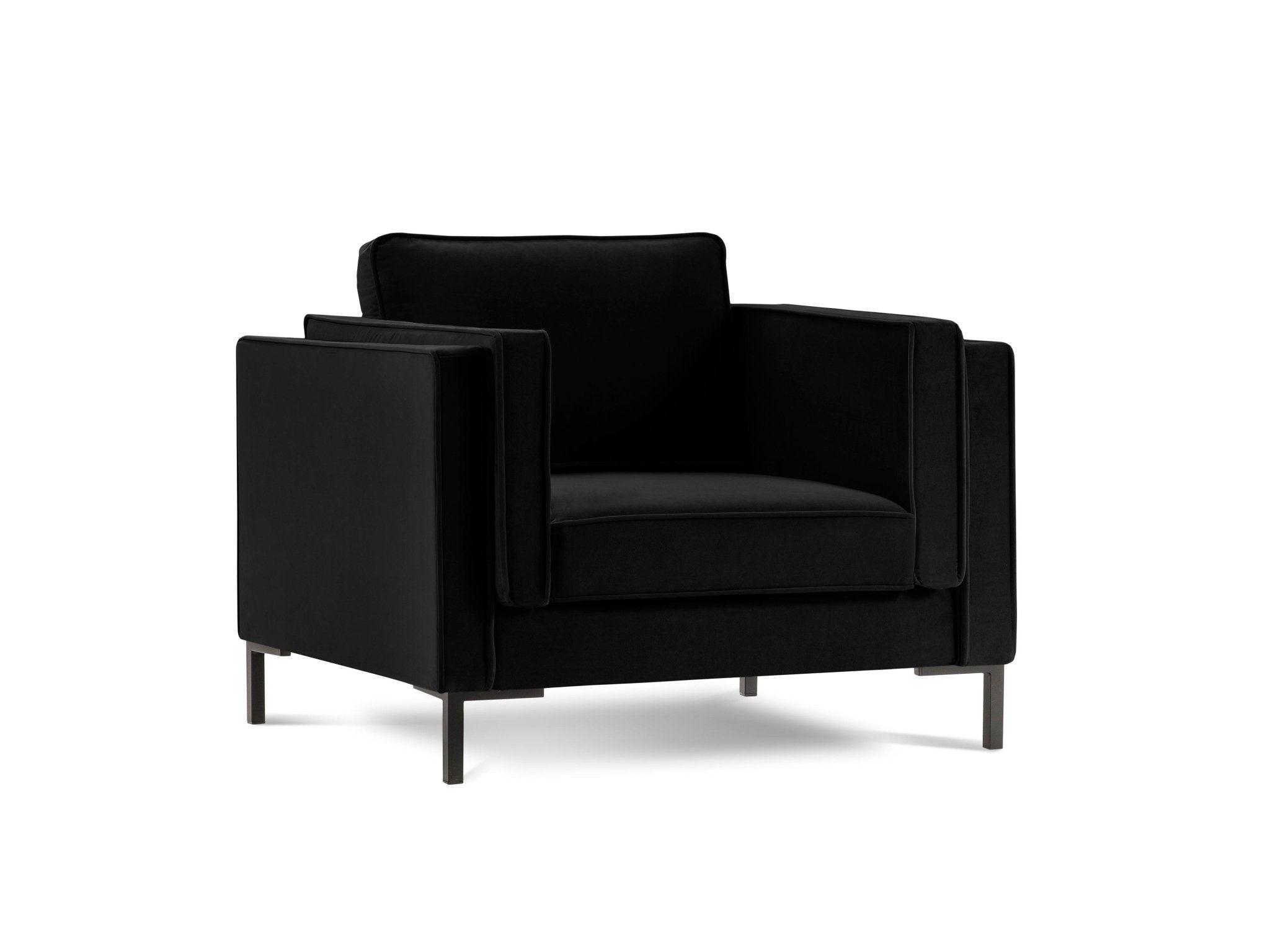 Luis ist ein bequemer Sessel, der die perfekte Ergänzung für ein elegantes Wohnzimmer oder Büro darstellt. Die moderne Form vereint minimalistisches Design und Funktionalität. Die solide Konstruktion basiert auf metallenen Beinen, die der gesamten Form Leichtigkeit verleihen. Der Bezug aus samtigem Material ist angenehm im Griff und besonders abriebfest.