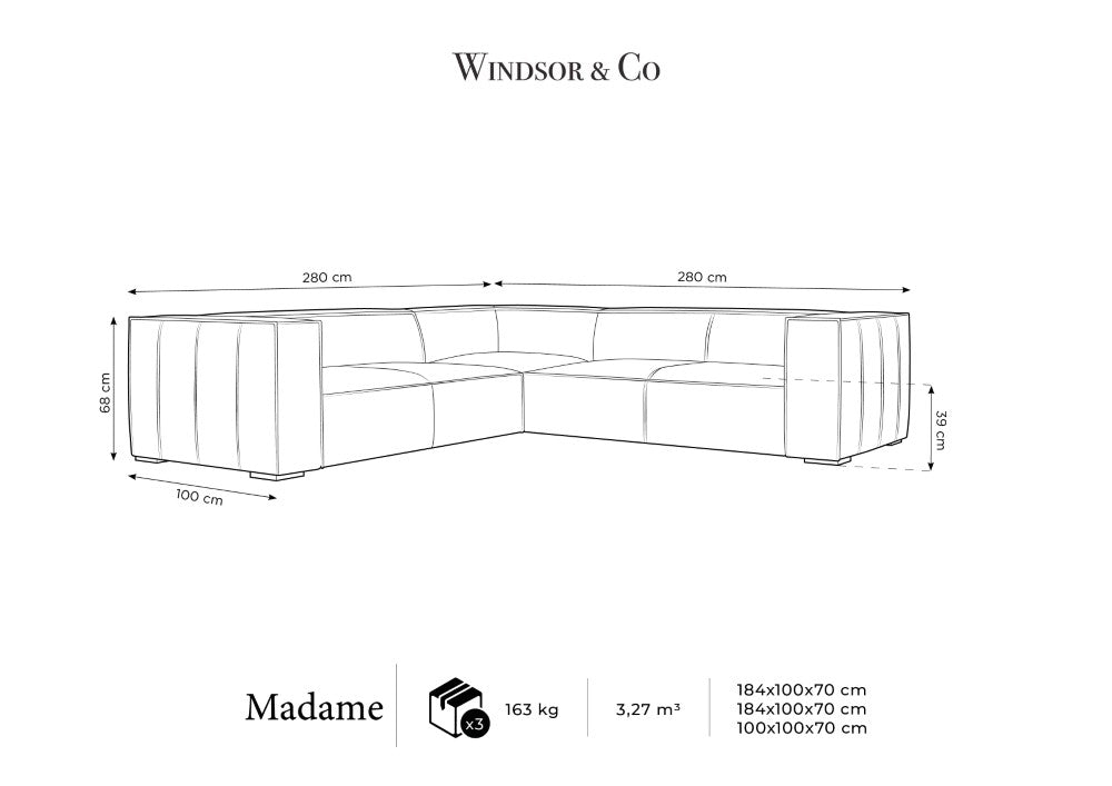 Leder-Ecksofa links Madame ist die perfekte Verbindung von Eleganz und zeitloser Form. Die geometrische, etwas schlichte Gestalt passt hervorragend in moderne klassische Innenräume mit einem Hauch von Modernität. Dekorative Steppnähte auf dem Lederbezug verleihen dem Gesamtbild einen außergewöhnlichen Charakter. Die Füße aus Buchenholz sehen nicht nur schön aus, sondern bieten auch eine solide Basis.