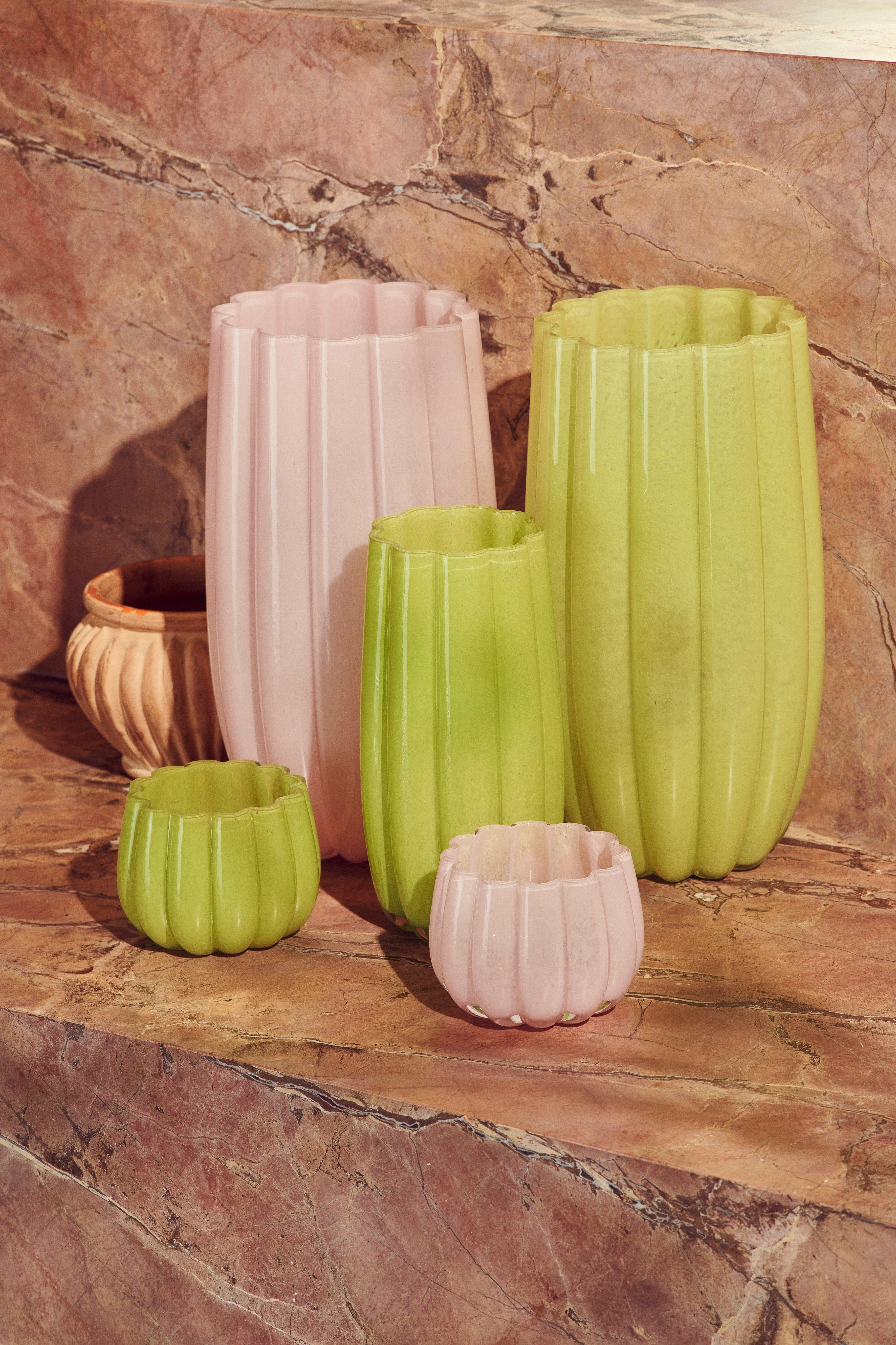 Leuchter Melone in hellrosa Farbe ist eine wirklich entzückende Dekoration. Helle, frische Farben verleihen ihm Delikatesse und subtiler Charme. Mit einer abgerundeten Form dekoriert dieser Kerzenstrick nicht nur Ihren Raum, sondern verleiht jeden Tag auch Charme und Magie.