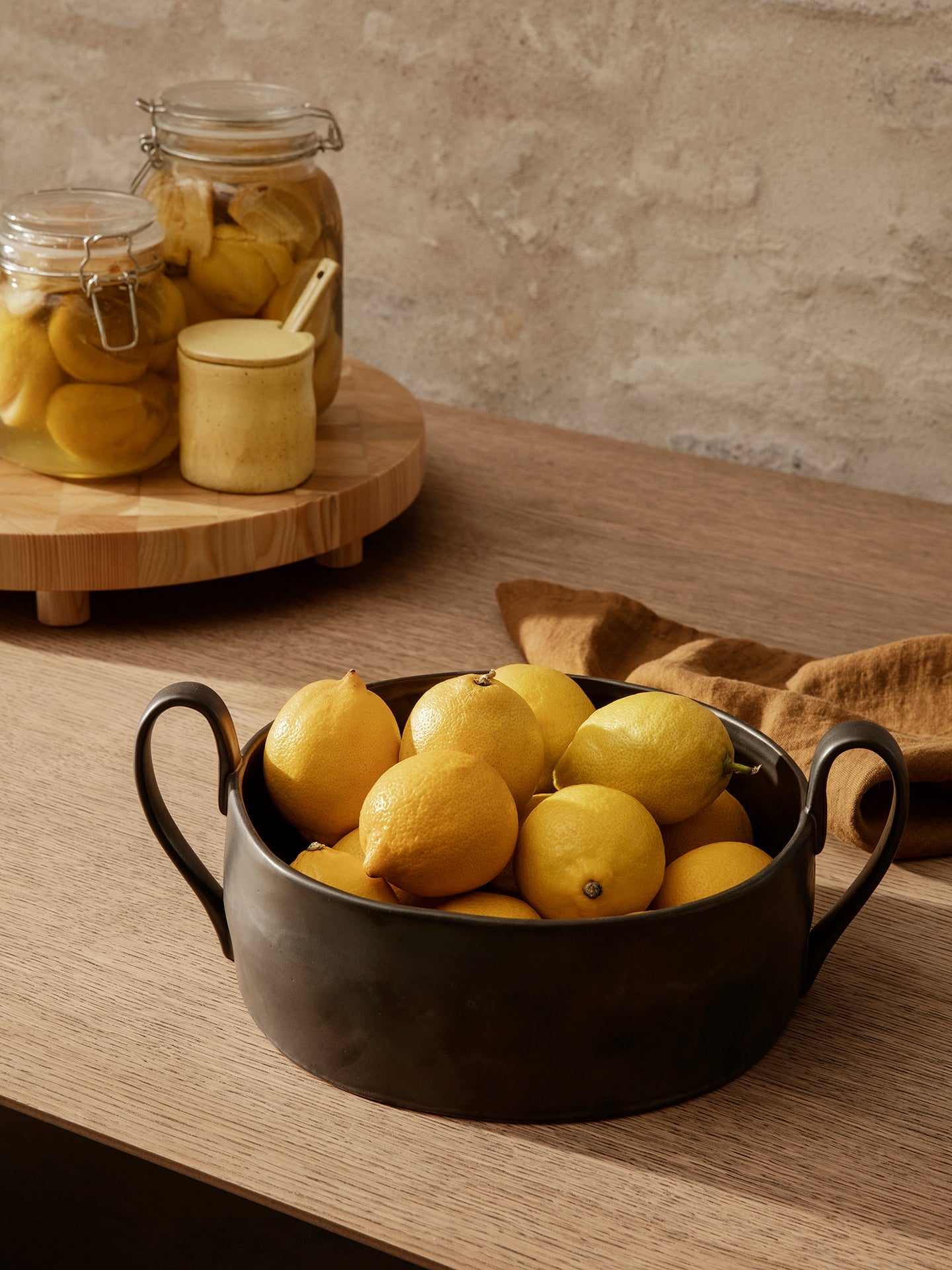 Die große Schale Flow Centrepiece ist ein einzigartiges Element der Flow-Kollektion, die moderne Ästhetik mit traditionellem Handwerk verbindet. Hergestellt aus Steinzeug und mit einer reaktiven, halbmatten Glasur in einem tiefen Schwarzton überzogen, begeistert sie durch natürliche Unregelmäßigkeiten und subtile Unterschiede in der Struktur. Ihre minimalistische Form wird durch zwei verlängerte Griffe aufgebrochen, die ihr Charakter verleihen und sie zum Mittelpunkt jeder Tischgestaltung machen.
