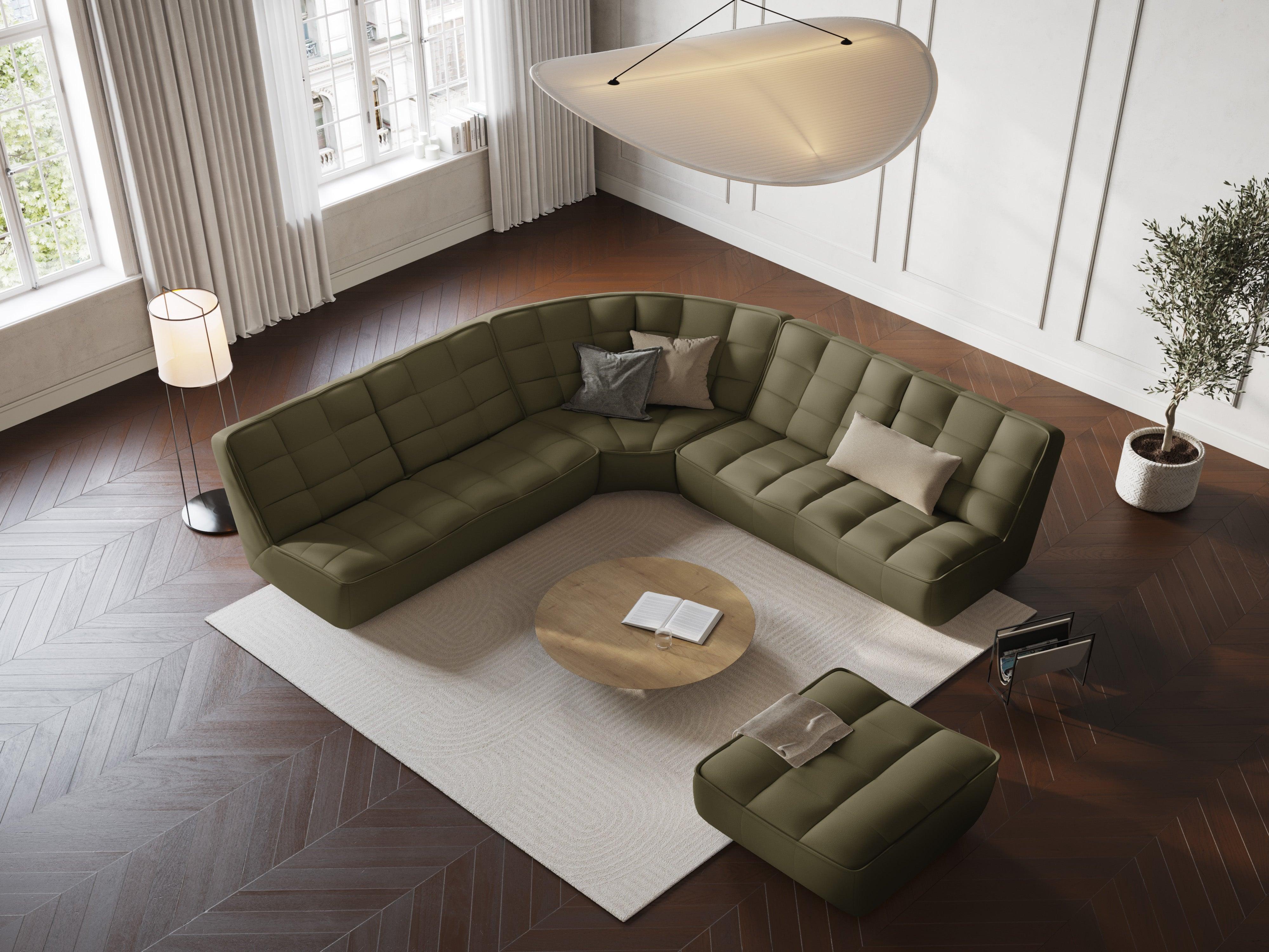 Lederpouf Moni definiert Funktionalität und Komfort in Kombination mit modernem Design. Die stilvolle Steppung und die originelle Form eignen sich hervorragend sowohl für ein elegantes Wohnzimmer als auch für ein modernes Büro. Der Bezug aus natürlichem Rindsleder ist sanft geprägt, wodurch seine Struktur sehr angenehm zu berühren ist. Die Moni-Kollektion umfasst mehrere Kombinationen von Sofas und Ecksofas sowie Elemente wie Sessel und Chaiselongues.