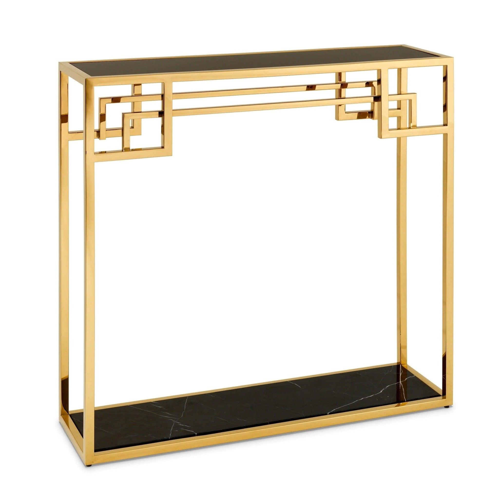 Die Konsole Morris ist eine Hommage an den Reichtum und den Prunk der 1920er Jahre im Art-Déco-Stil. Die reichen Details, inspiriert von klassischen griechischen Schlüsselmotiven, machen diese Möbel zu einem wahren Meisterwerk. Ihre offene Konstruktion vergrößert zusätzlich den Raum und verleiht den Innenräumen Leichtigkeit. Lassen Sie die Designer-Konsole Morris zum Blickfang in Ihrem Flur oder Wohnzimmer werden und bringen Sie die Atmosphäre von Luxus und Raffinesse in Ihr Zuhause, die Sie sich wünschen.