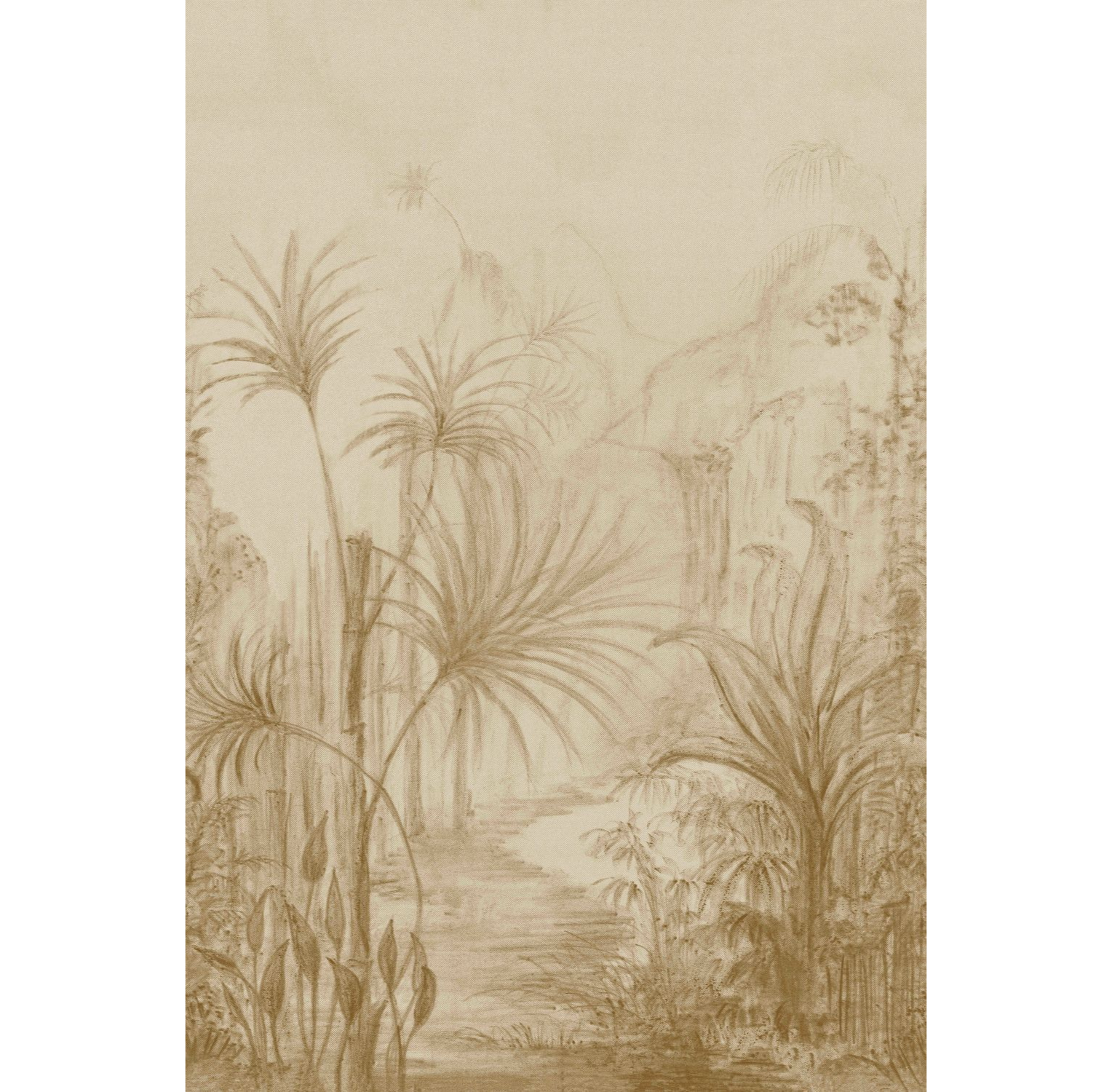 Wandbild, das Leinen mit einem pflanzlichen Landschaftsbild einer Palmenhaine imitiert, ARILLE, braun