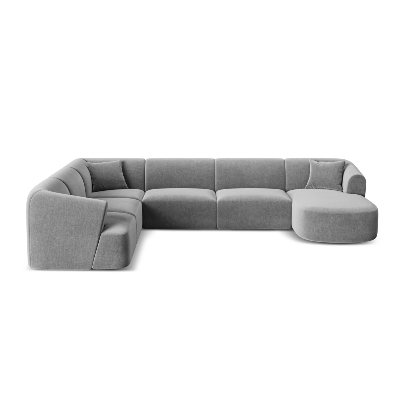 Linksseitiges, samtiges, panoramisches 7-Sitzer-Sofa CAMPI in Grau