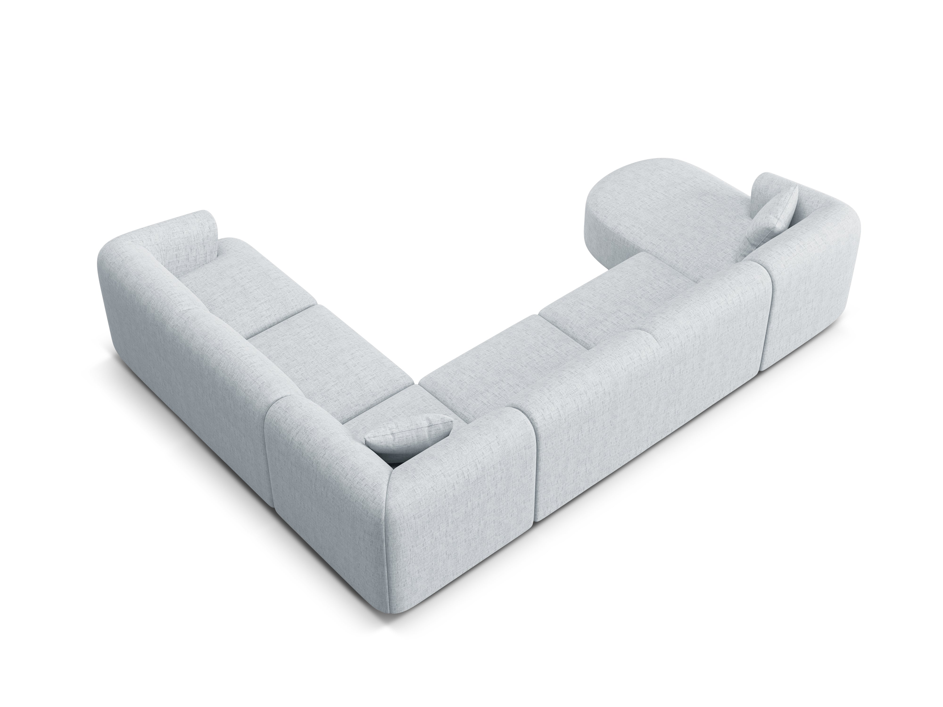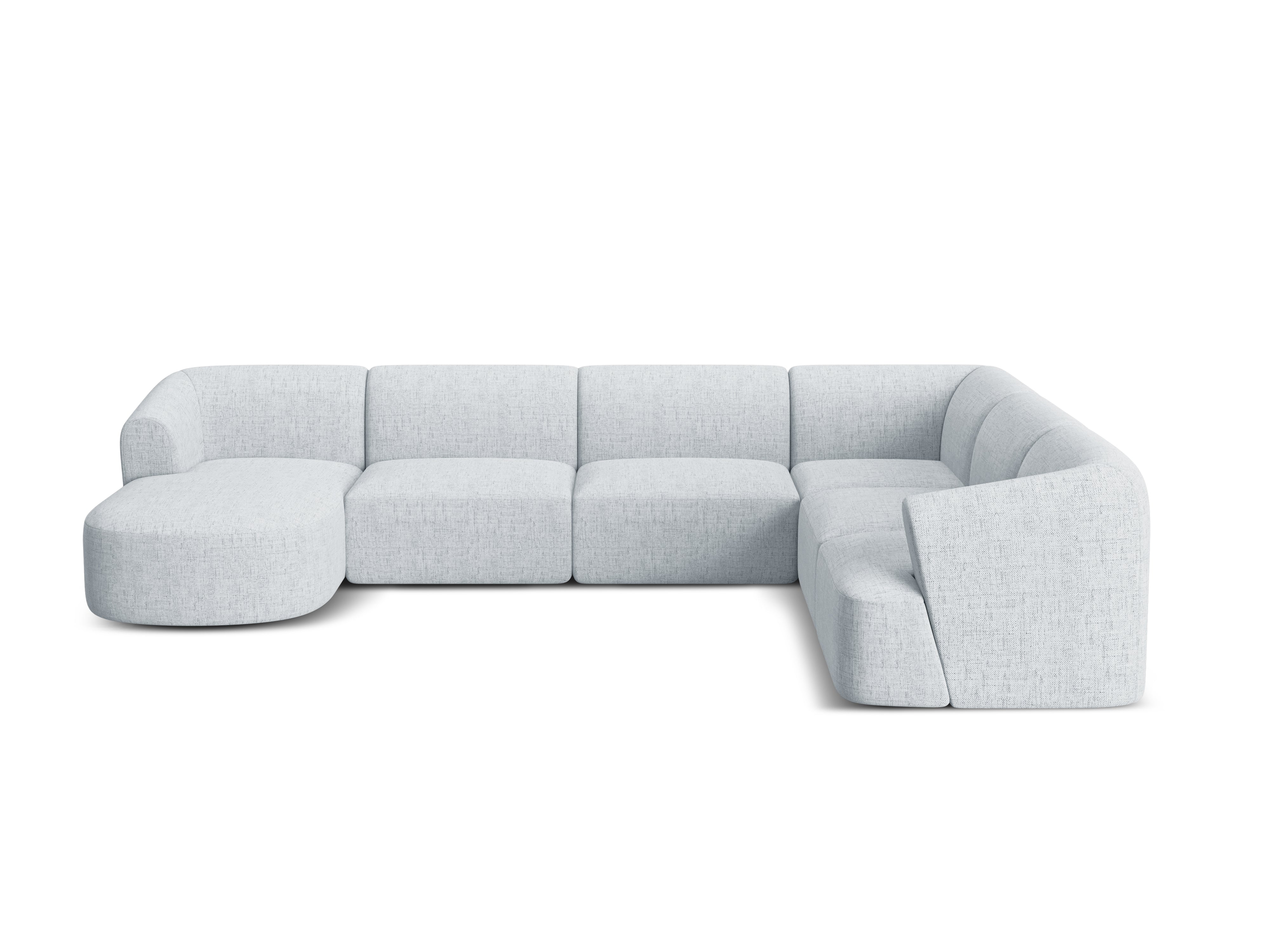 Rechtsseitige panoramische 7-sitzige Eckcouch CAMPI hellgraues Chenille