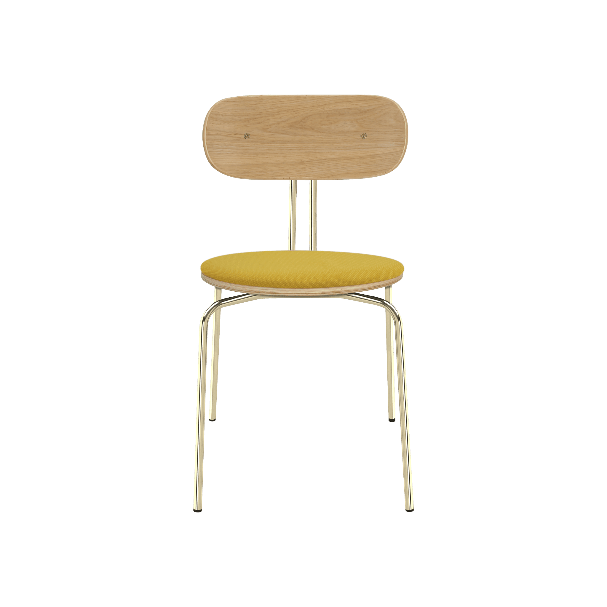 Stuhl Neugierig ist elegant, leichte und minimalistische Möbel aus Eichenfurnier. Es ist mit Messing- oder schwarzen Beinen erhältlich, und das optionale Sitzkissen bietet zusätzlichen Komfort. Sie können ein Kissen aus 17 Farben des Horizons -Stoffes auswählen, die 100% recycelt sind, sowie in einem braunen oder weißen Schatten mit Teddybärenstoff.