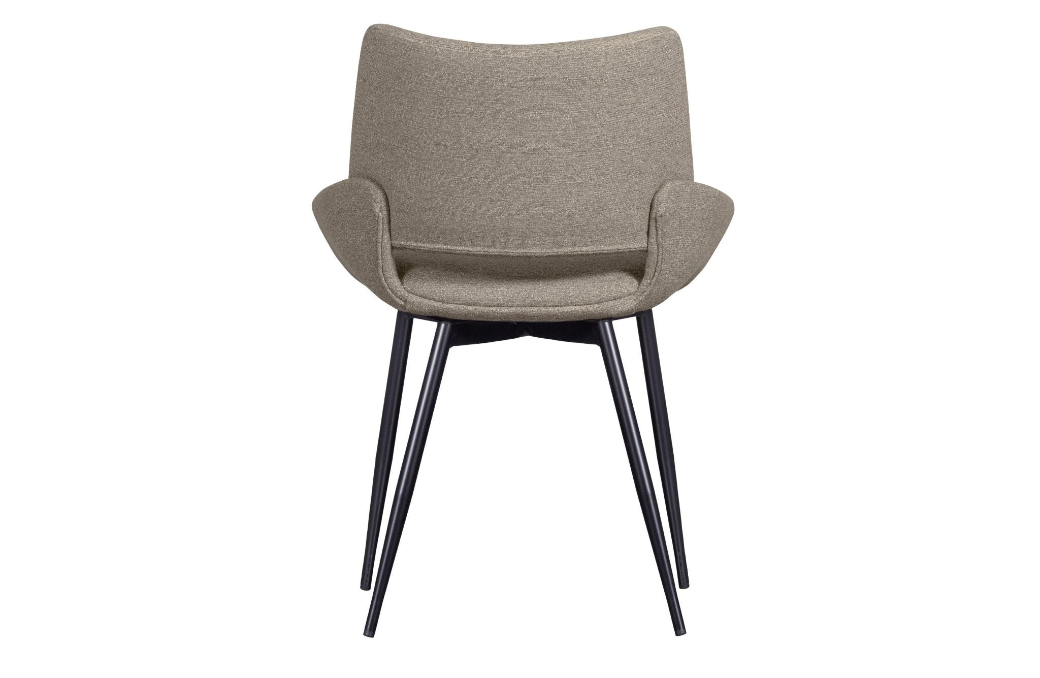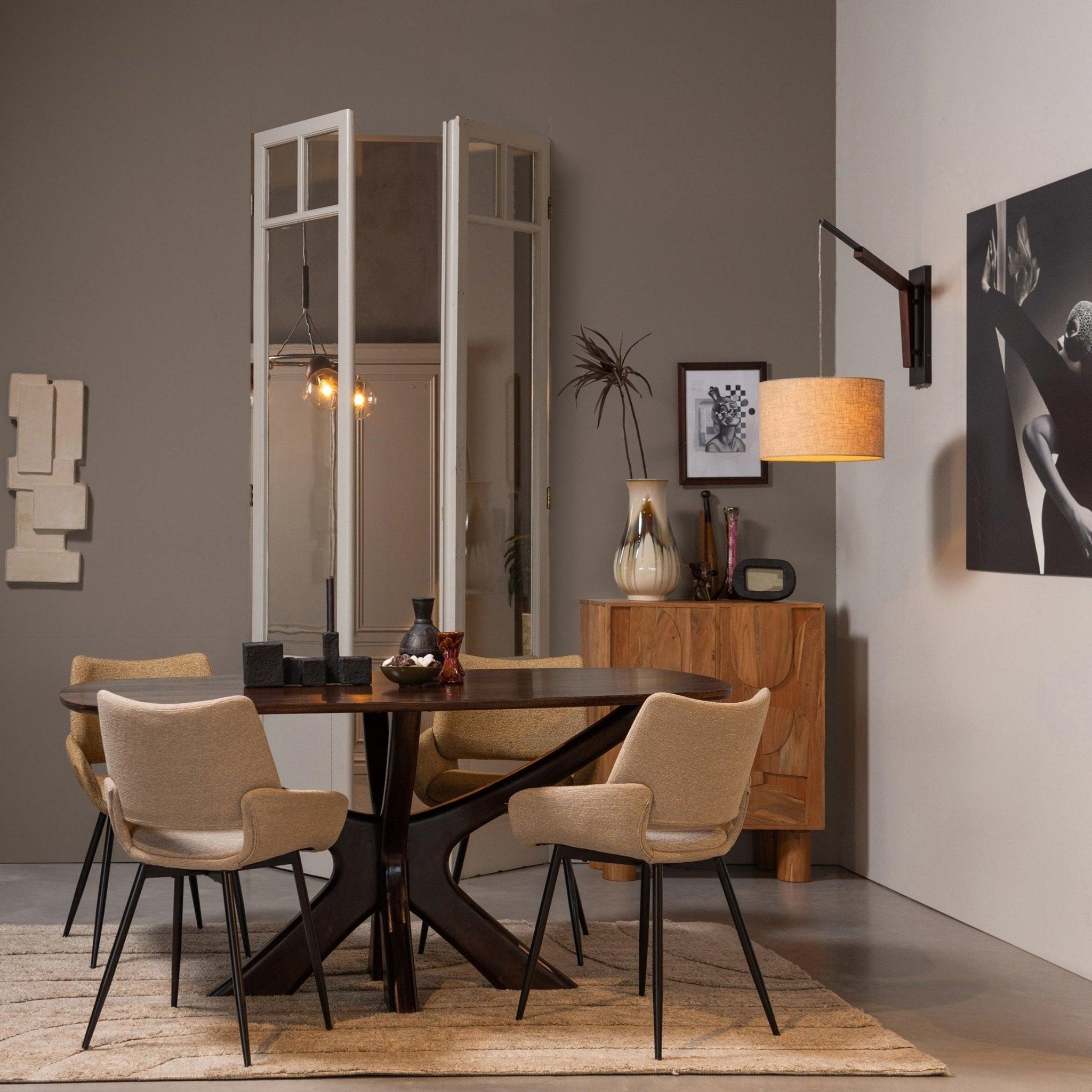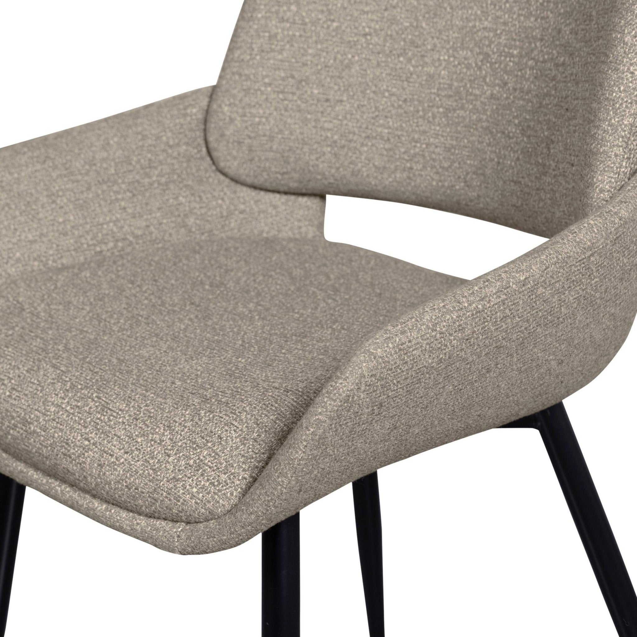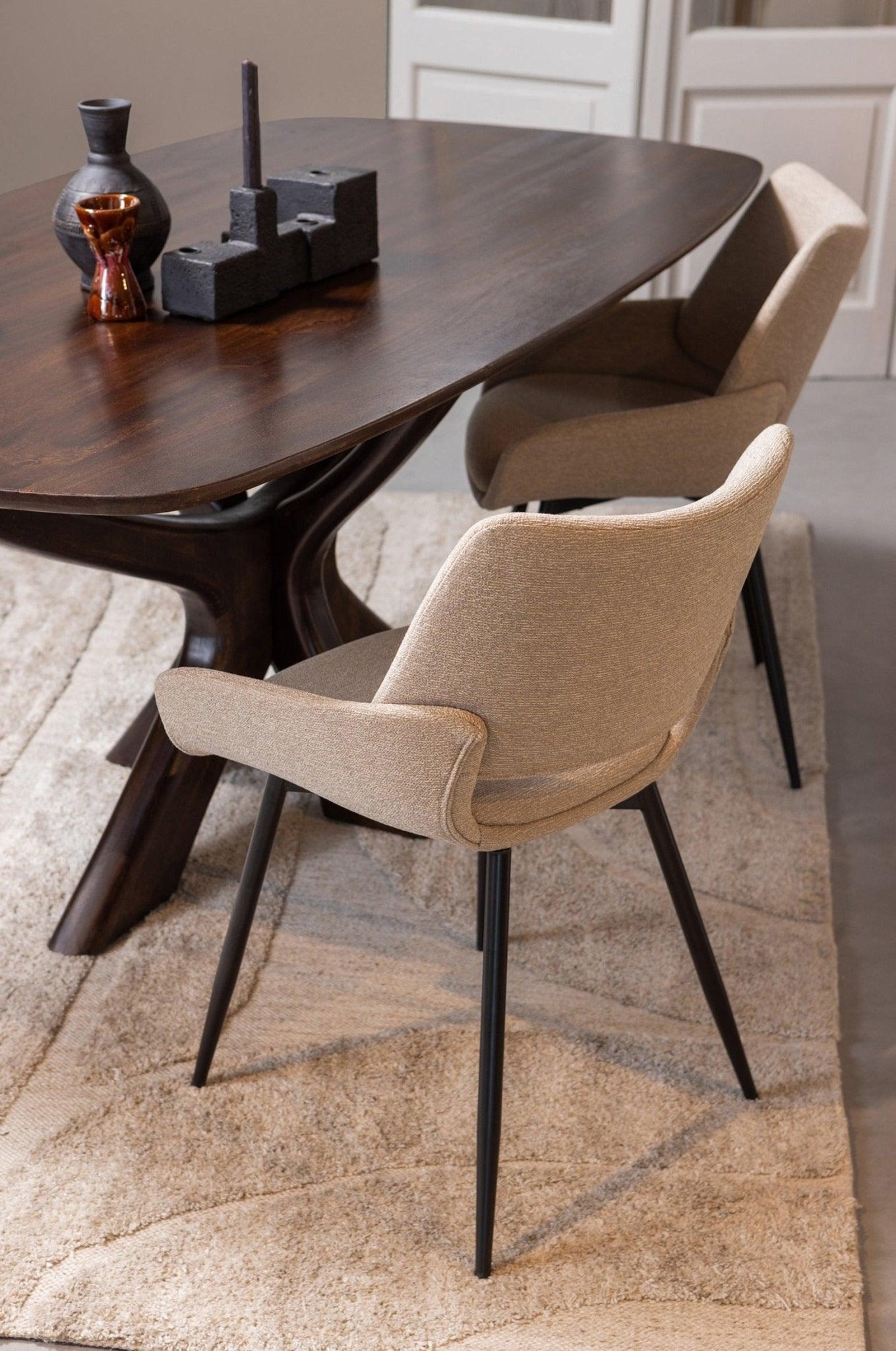 Die Kombination aus dem dunklen Gestell und dem zarten sandfarbenen Melange kontrastiert miteinander und schafft gleichzeitig ein harmonisches Gesamtbild, das schwer zu vergessen ist. Die traditionelle, elegante Form des Stuhls sorgt dafür, dass er nicht nur designorientiert, sondern auch bequem ist.