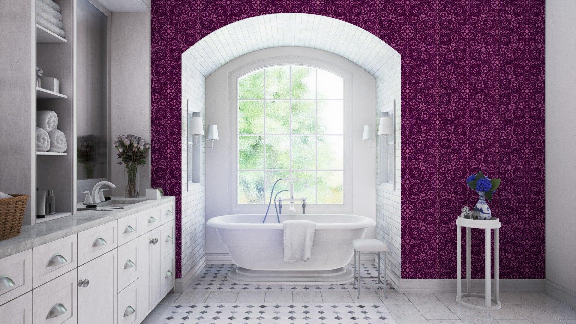 Tauchen Sie ein in die Welt der Eleganz mit der Tapete Paseo - Grenat, geschmückt mit einer neuen Interpretation eines Schlüsselmotivs aus der Kollektion Arles. Der dekorative Flok, einzigartig und raffiniert, wird auf einem reichen, matten Untergrund gedruckt, der dem Raum Exklusivität und Subtilität verleiht. Der luxuriöse Vliesuntergrund erleichtert nicht nur das Anbringen, sondern hebt auch die hohe Qualität dieser Tapete hervor. Spüren Sie den Luxus der Reinheit, denn diese lila Tapete ist rein wie ein Schwamm und lässt die Wand nicht nur schön, sondern auch leicht in makellosem Zustand halten. Lassen Sie Paseo Ihrem Raum einen einzigartigen Charakter verleihen, indem es Tradition mit Modernität verbindet.