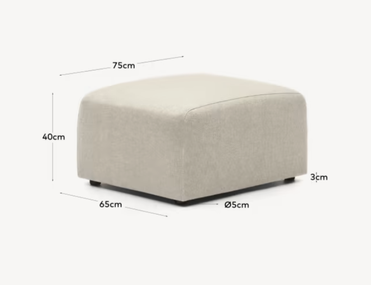 Beiger Puff Neom fügt sich perfekt in das Konzept der Kollektion ein und ermöglicht eine einfache Kombination mit anderen Modulen, ohne dass komplizierte Montagearbeiten erforderlich sind. Ihr universelles Design sorgt dafür, dass der Puff als zusätzliche Sitzgelegenheit, Fußstütze oder sogar als Couchtisch verwendet werden kann, was der Raumgestaltung Flexibilität verleiht.