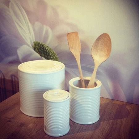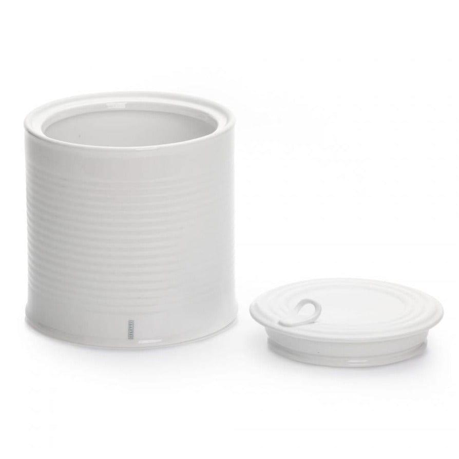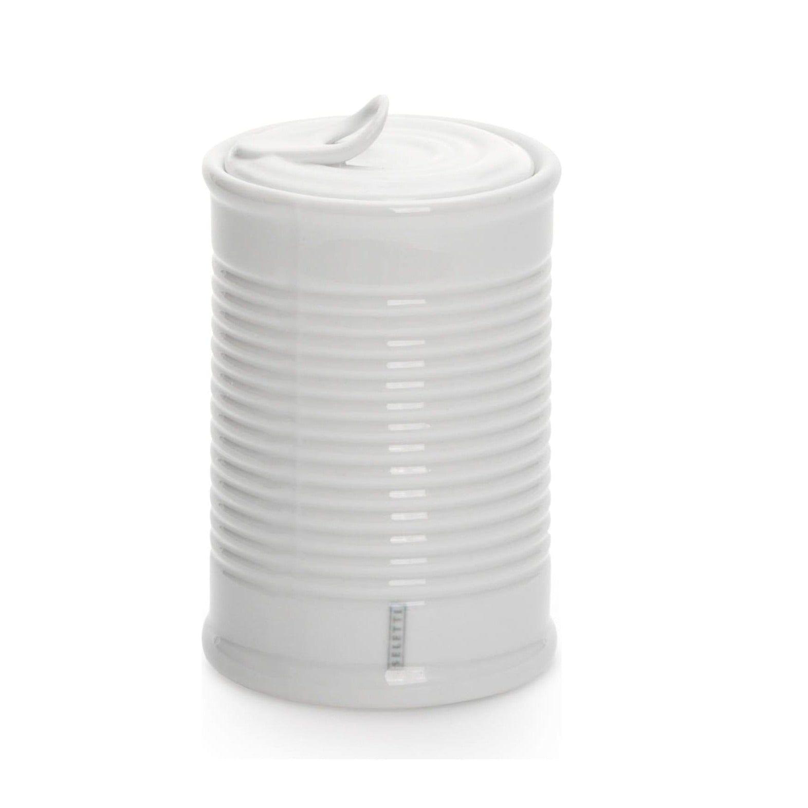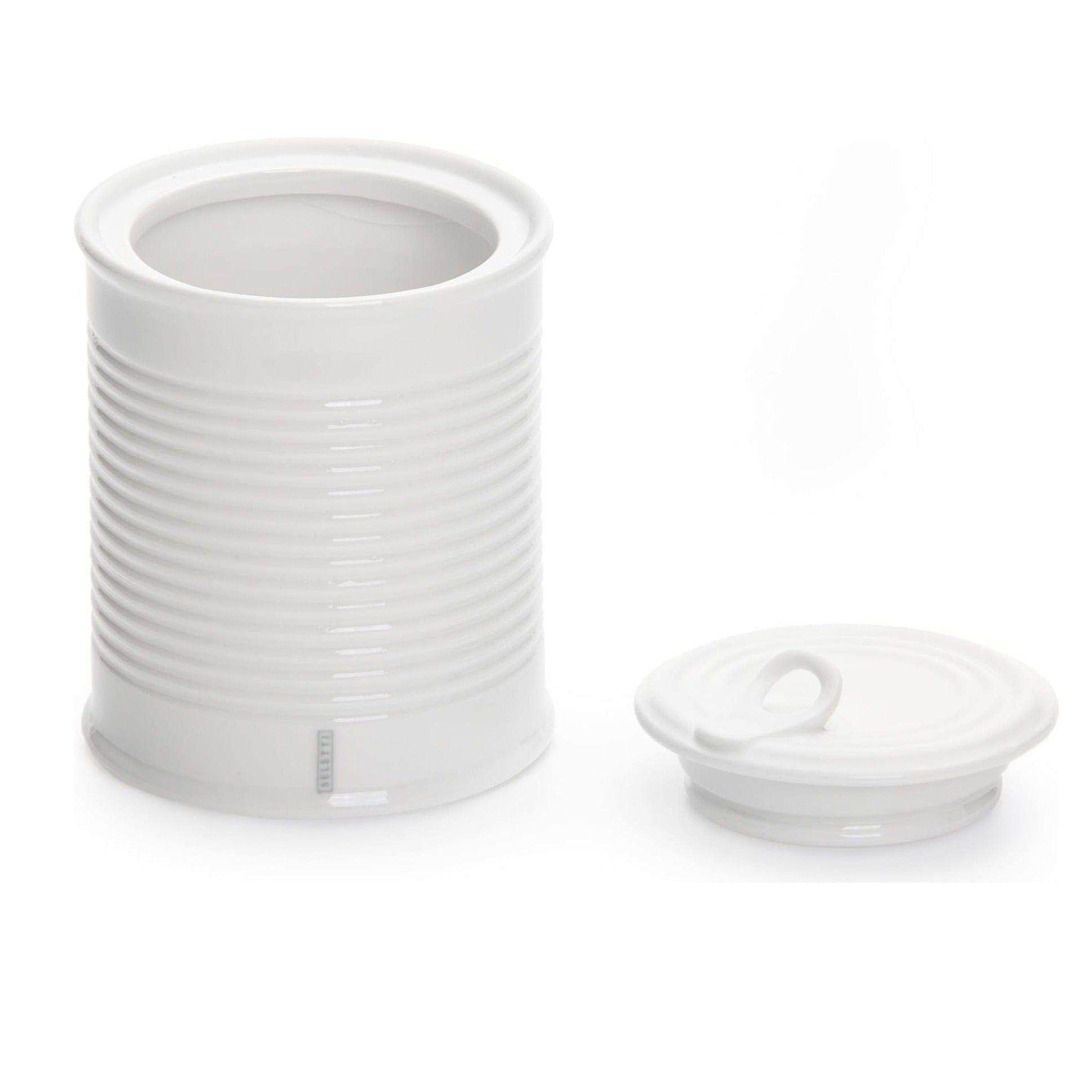 Der Behälter besteht aus weißem Porzellan.