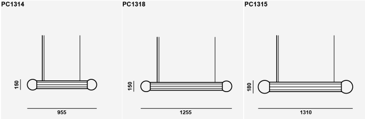 Die Kollektion bietet beide horizontale Modelle mit zwei Doppelglaskugeln sowie vertikal mit einer einzelnen Kugel, die an Drahtlinien hängt. Der Metallleuchten mit transparentem oder grauem Räucherglas verleiht der Lampe einen Juwel, der sich ideal für private Innenräume und Geschäftsräume wie Hotels und Restaurants ideal.