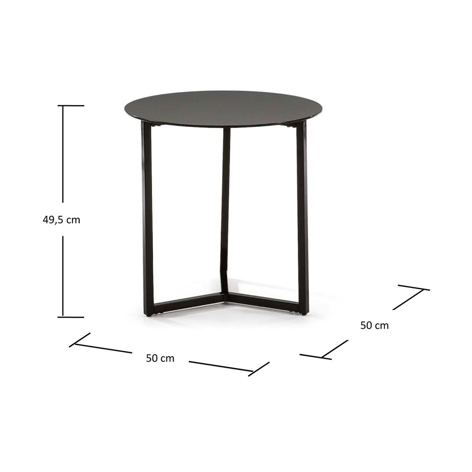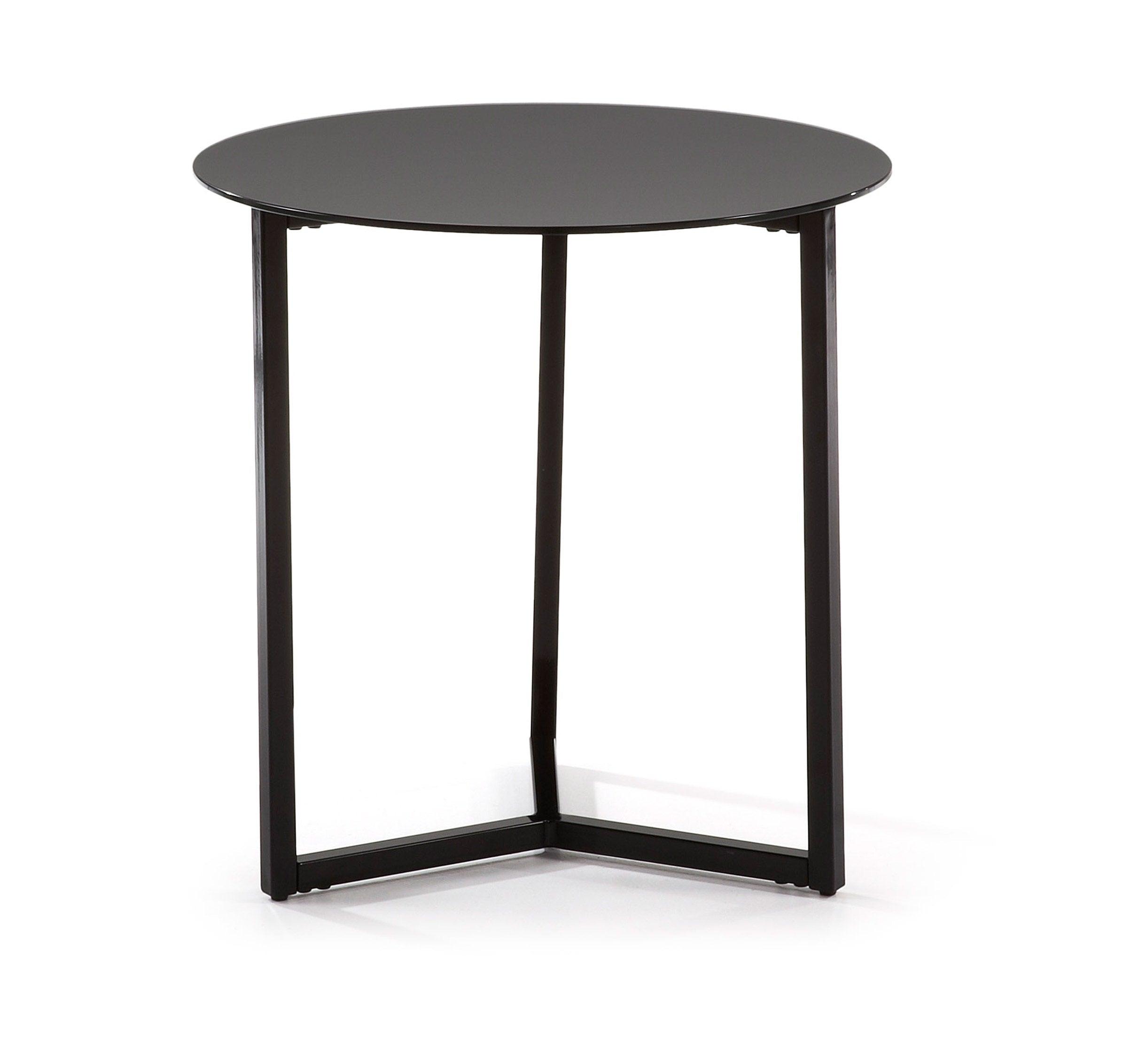 Beistelltisch Raeam mit runder Tischplatte, gefertigt aus schwarzem gehärtetem Glas, ist eine äußerst stilvolle Ergänzung für verschiedene Arten von Innenräumen, einschließlich Wohnzimmer oder Aufenthaltsräumen. Sein einzigartiges Design und die hochwertigen Materialien machen ihn nicht nur zu einem praktischen Möbelstück, sondern auch zu einem Ausdruck von Stil, der sich mühelos in jede Art von Einrichtung und Umgebung einfügt.