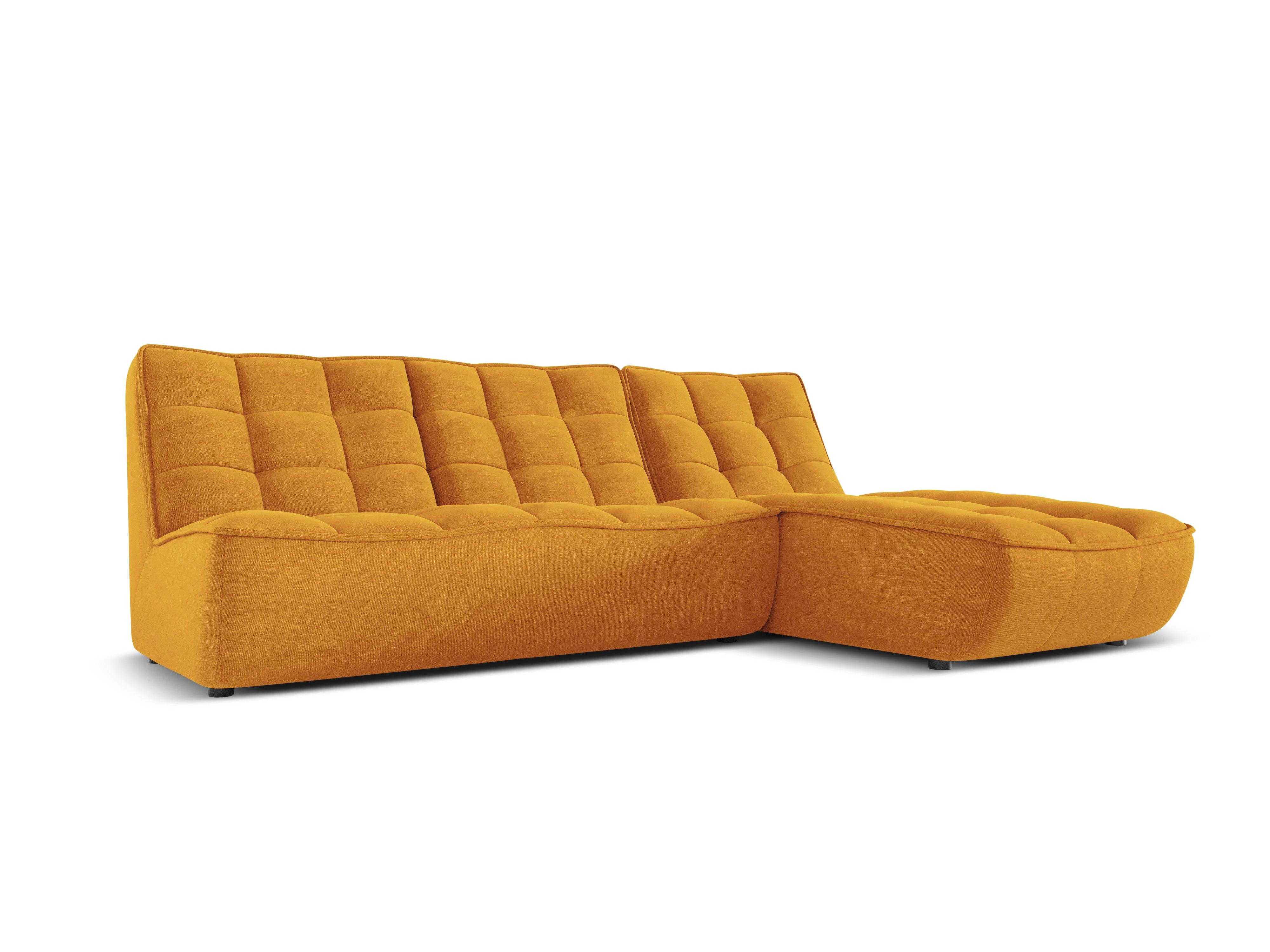 Die Eckcouch für vier Personen Moni definiert Funktionalität und Komfort in Kombination mit modernem Design. Stilvolles Steppdesign und die originelle Form eignen sich sowohl für ein elegantes Wohnzimmer als auch für ein modernes Büro. Die Linie der Sitzfläche und der Rückenlehne ist bogenförmig und verfügt über eine sanft geformte Vertiefung, die außergewöhnlichen Komfort bietet.