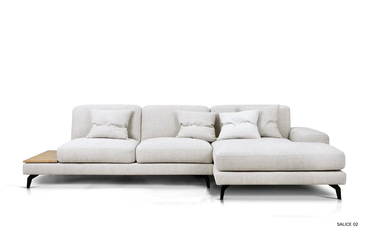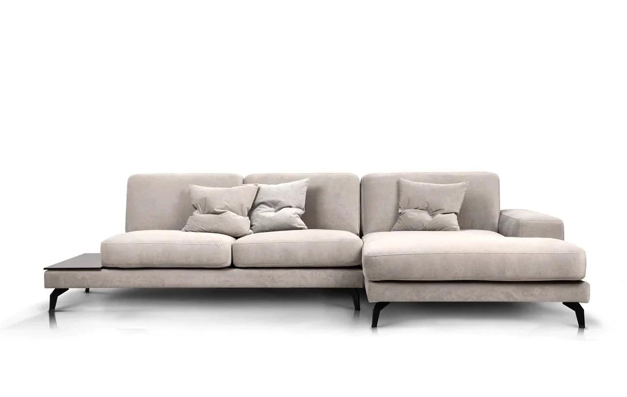 Was die Eckcouch Enjoy von anderen Möbeln abhebt, ist die innovative Option, eines der Kissen in einen praktischen Tisch zu verwandeln. Diese Funktionalität ermöglicht es, eine Tasse mit dem Lieblingsgetränk oder eine Nachttischlampe bequem abzustellen, was die Eckcouch noch vielseitiger macht.