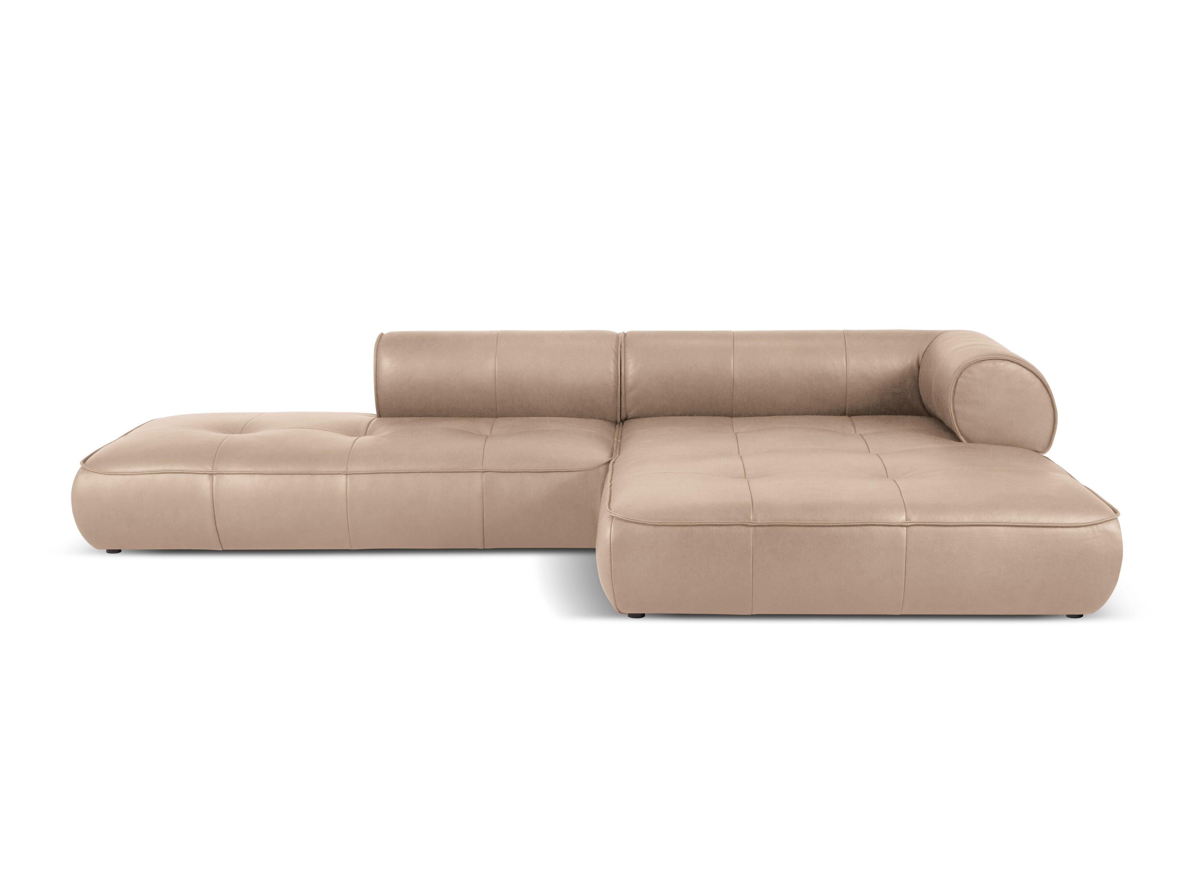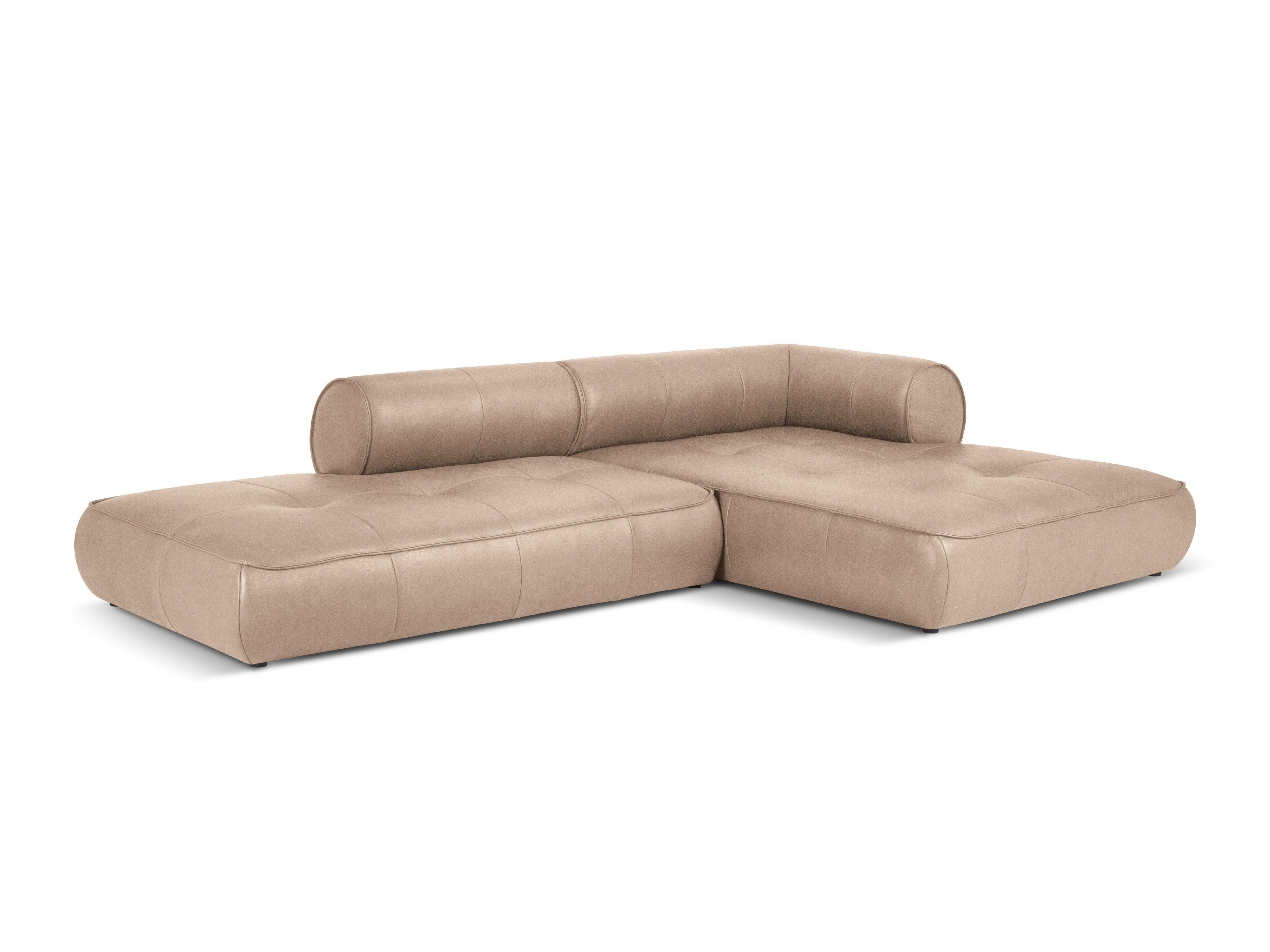 Leder-Ecksofa für vier Personen Lily verleiht jedem Raum einen Hauch von zeitloser Eleganz. Die außergewöhnliche Form ist das Ergebnis eines modernen Ansatzes für klassische Ledermöbel. Die abgerundeten Kanten der Sitzflächen haben eine äußerst originelle Form, und die stilvollen Rückenlehnen sorgen für den richtigen Komfort beim Entspannen.