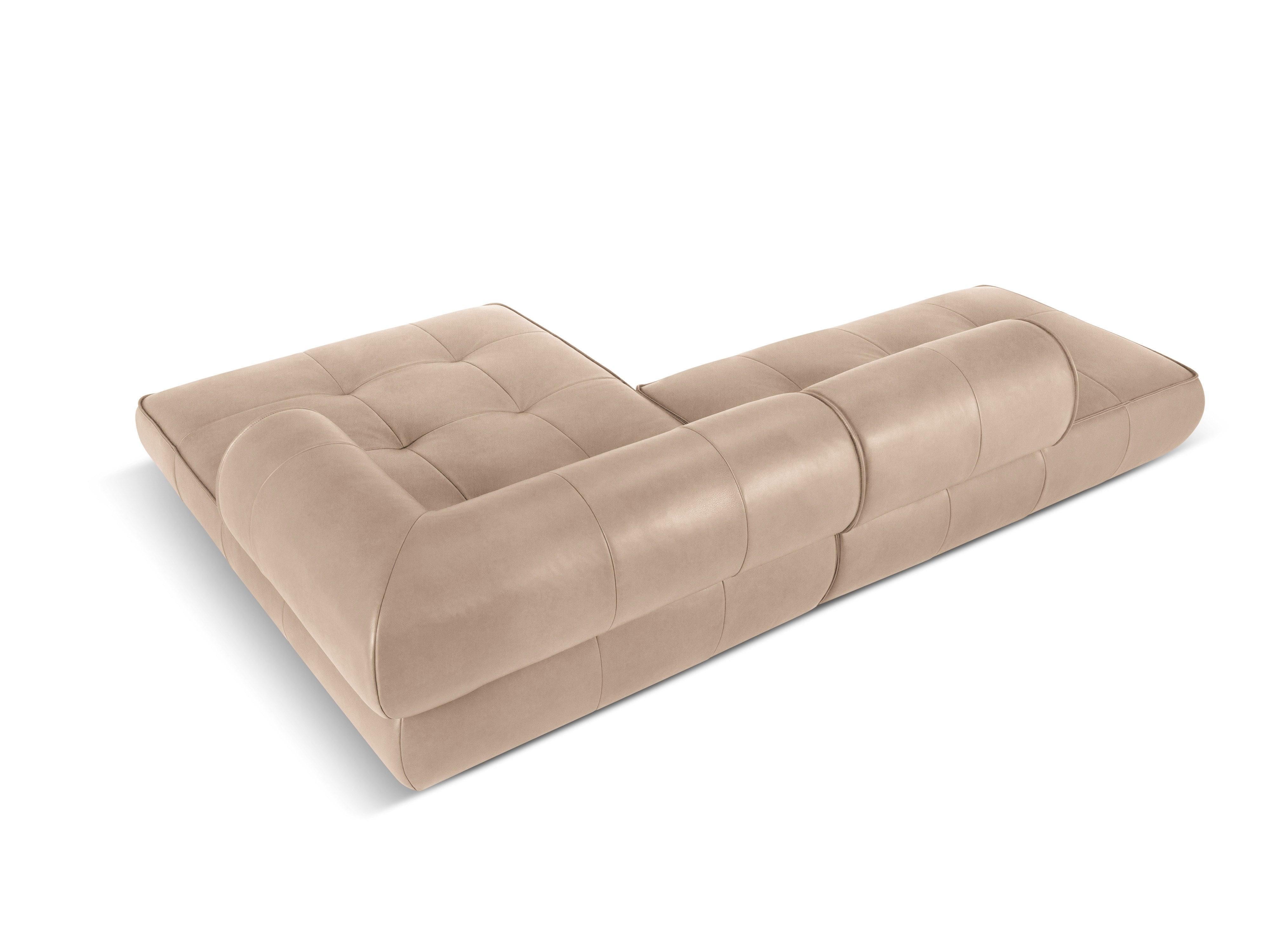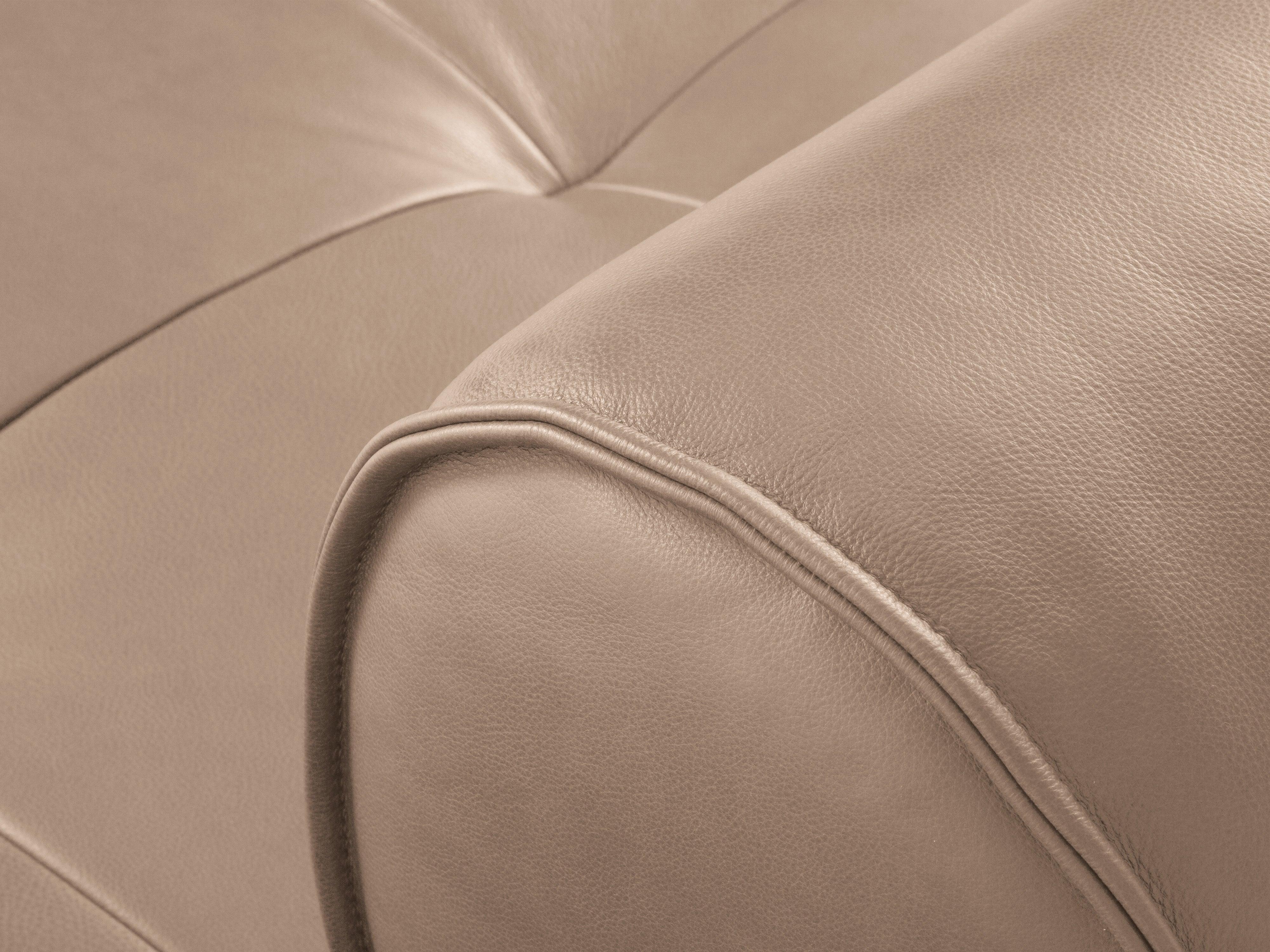 Die tiefen Sitzflächen sind elastisch und außergewöhnlich bequem. Zarte Steppungen und Nähte betonen den klassischen Charakter des Designs. Dank der niedrigen und breiten Silhouette bringt das Ecksofa Lily ein wenig Gemütlichkeit und Wärme in den Raum. In der Kollektion sind verschiedene Kombinationen von Sofas und Ecksofas sowie ein Chaiselong und ein großer Pouf erhältlich, mit denen Sie eine einzigartige Einrichtung schaffen können.