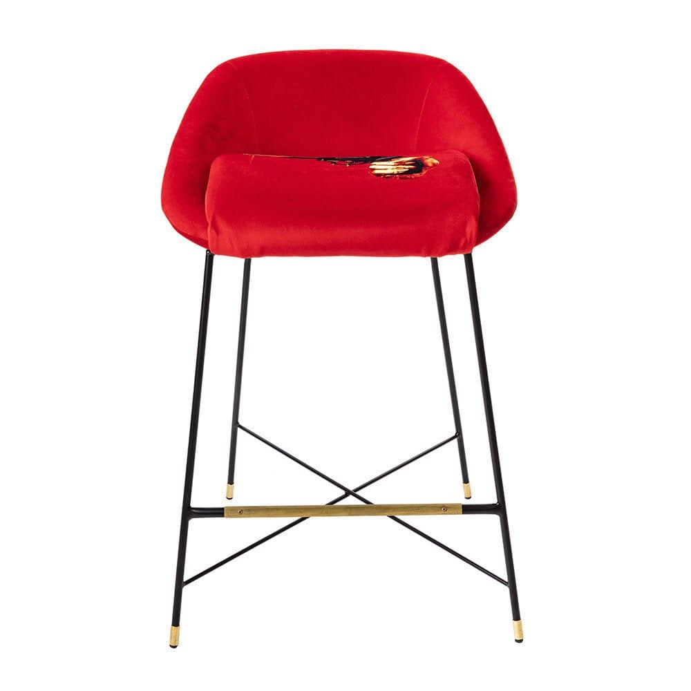 Designer Hocker Im Stil der 1950er Jahre aus dem italienischen König der Avant -Gärte - Seletti, die Wie ein Tor zu einer anderen surrealen Dimension verleiht es dem Innenraum einen einzigartigen Charakter. Polsterung mit ausdrucksstarker, dynamischer Farben und einer leicht kontroversen Collage erzeugen ein originelles Kunstwerk.