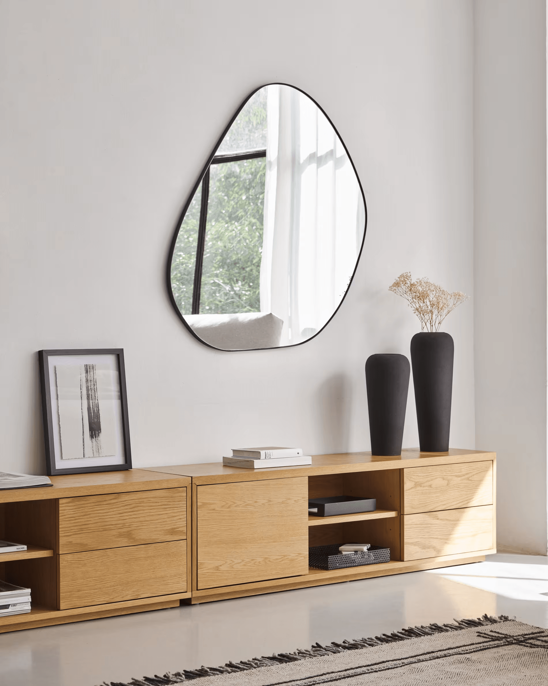 Eichenkommode verleiht dem Raum Leichtigkeit und lässt ihn heller und geräumiger erscheinen. Abilen ist nicht nur ein funktionaler Ort zur Aufbewahrung von Medien, sondern auch ein elegantes Dekorationselement, das den einzigartigen Charakter Ihres Interieurs unterstreicht.