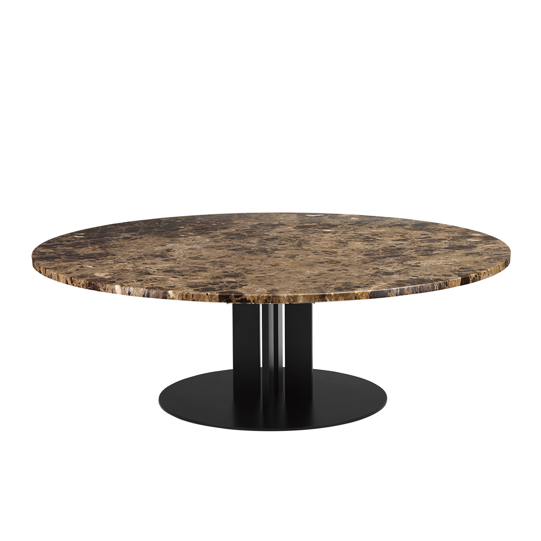 Runder Couchtisch Scala Marmor Kaffeeoberteil mit einer schwarzen Basis