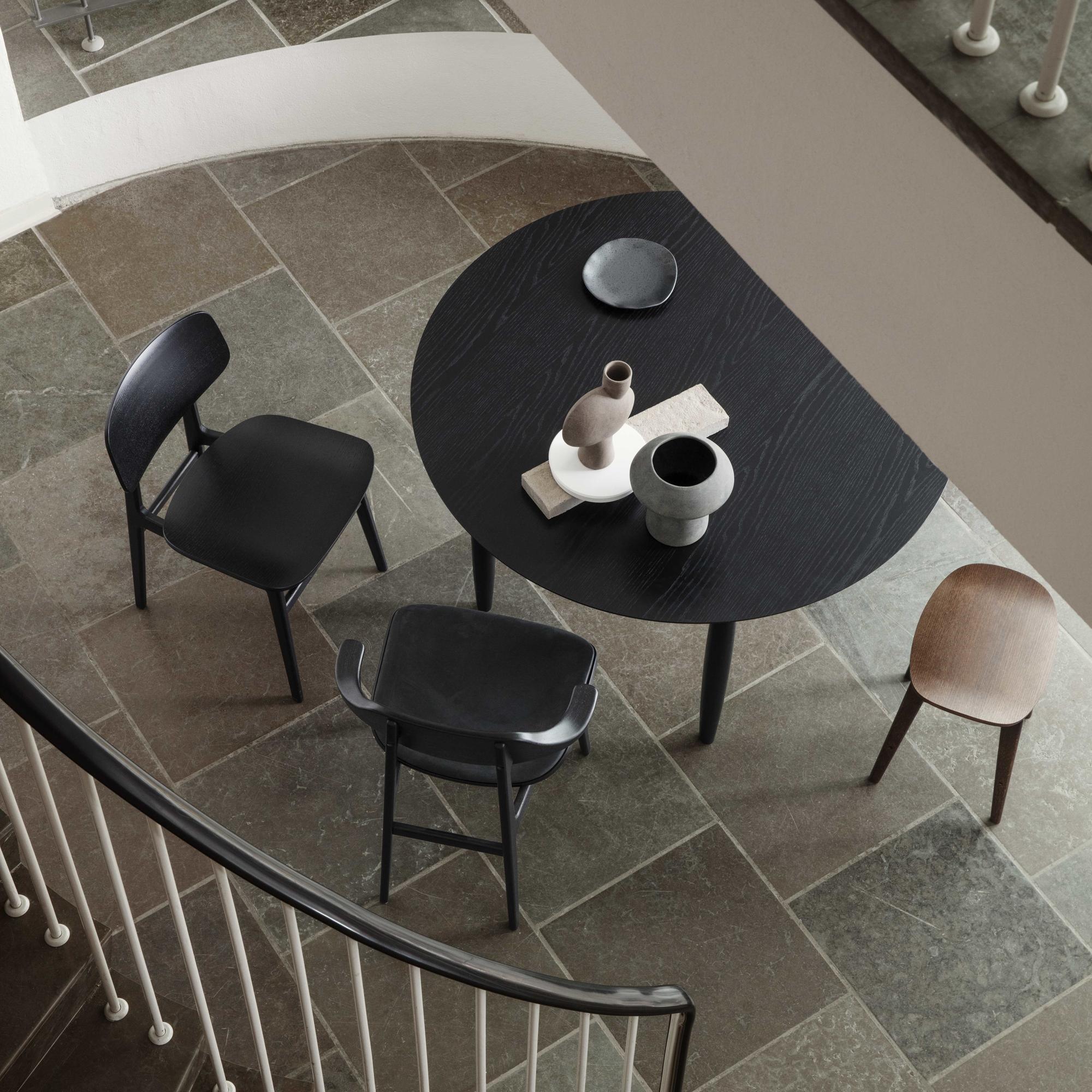 Tisch Das Auge ist eine Interpretation des japanischen Wortes, was die "ōku" -Reak bedeutet. Arbeitsplatte Tisch Das Auge besteht aus Eichenfurnier mit abgerundeten Kanten, was ein ausgeklügeltes Detail einer großen Oberfläche hinzufügt. Die Beine aus den Abschnitten von Eichenholz werden sporadisch platziert, um die Illusion einer schwebenden Arbeitsplatte zu erzeugen, während der Tisch skulpturale Details hinzugefügt werden.