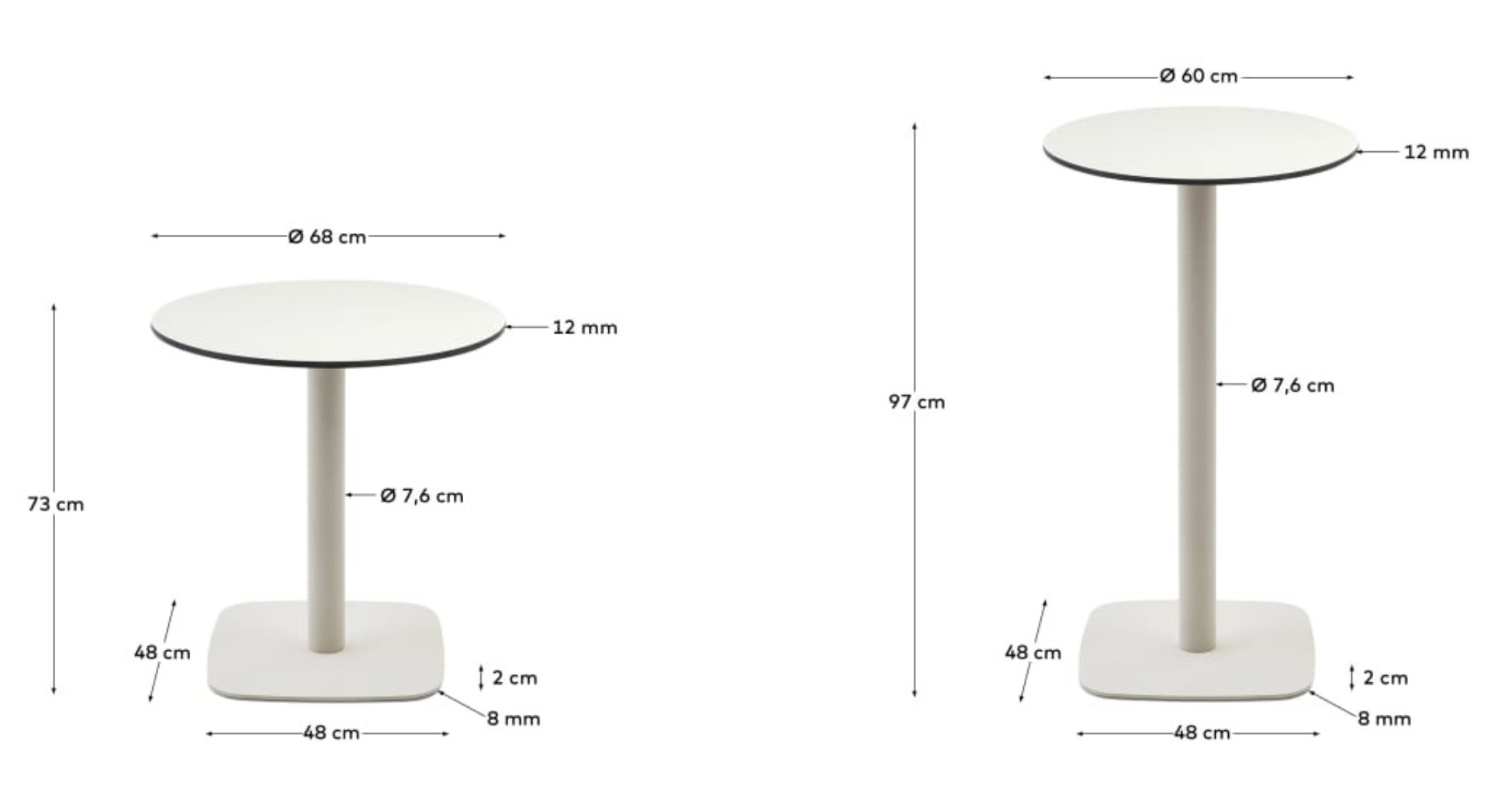 Eine runde Tischplatte verleiht ihm ein raffiniertes Erscheinungsbild, während eine feste Metallbasis Stabilität und Haltbarkeit sorgt. White fügt Eleganz und Leichtigkeit hinzu, passt sowohl moderne als auch klassische Innenräume und verleiht dem Raum einen hellen und geräumigen Charakter.