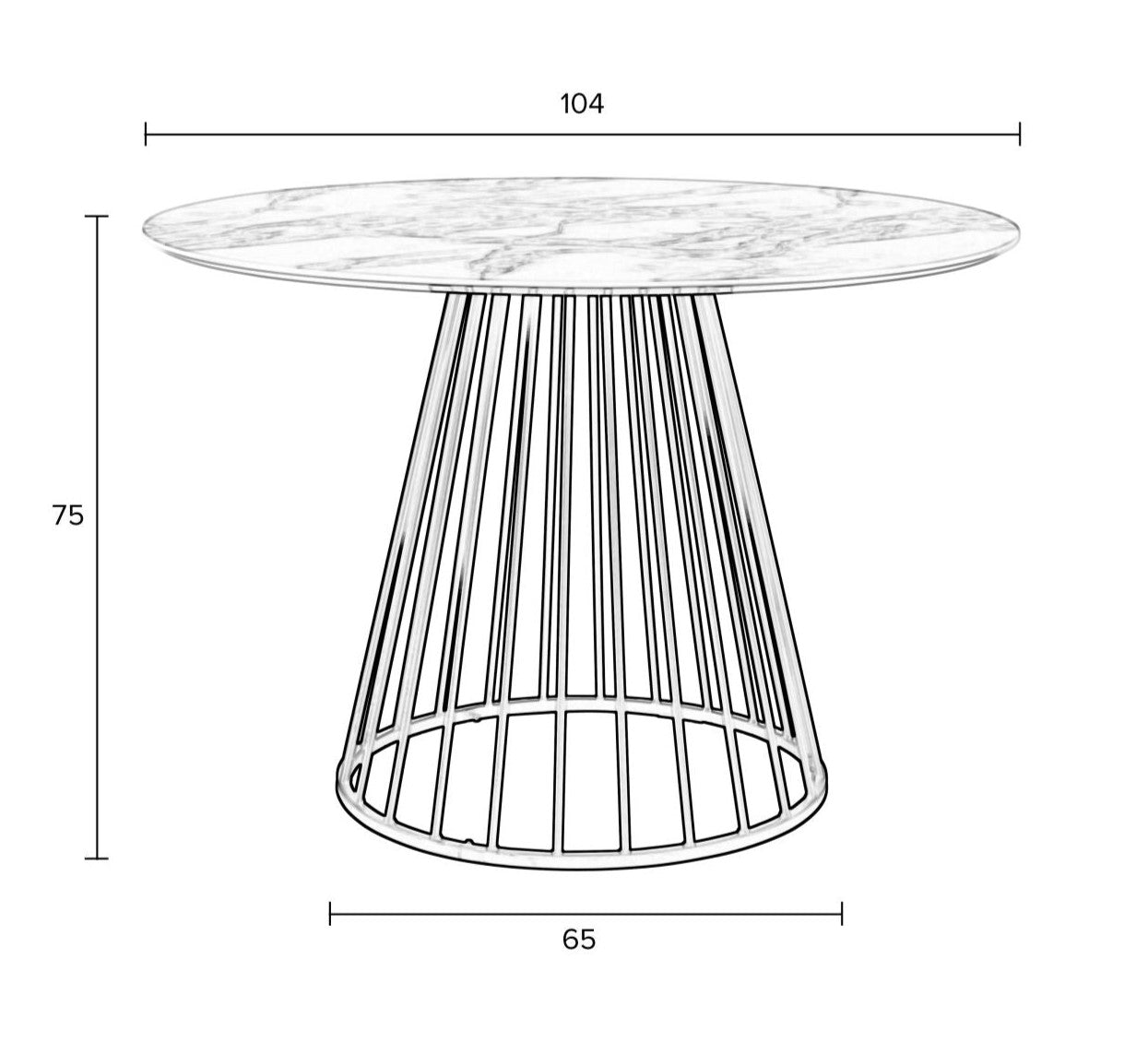 Der runde Tisch Floris ist ein Blickfang mit seiner marmorierten Tischplatte und der einzigartigen Konstruktion des Gestells. Die Tischplatte verbindet MDF mit weißem Marmor, der sichtbare Adern aufweist, die ihm einen besonderen Charme verleihen. Das Gestell des Tisches ist eine originelle, nach unten hin sich erweiternde Säule, die aus galvanisierten Eisenrohren besteht.
