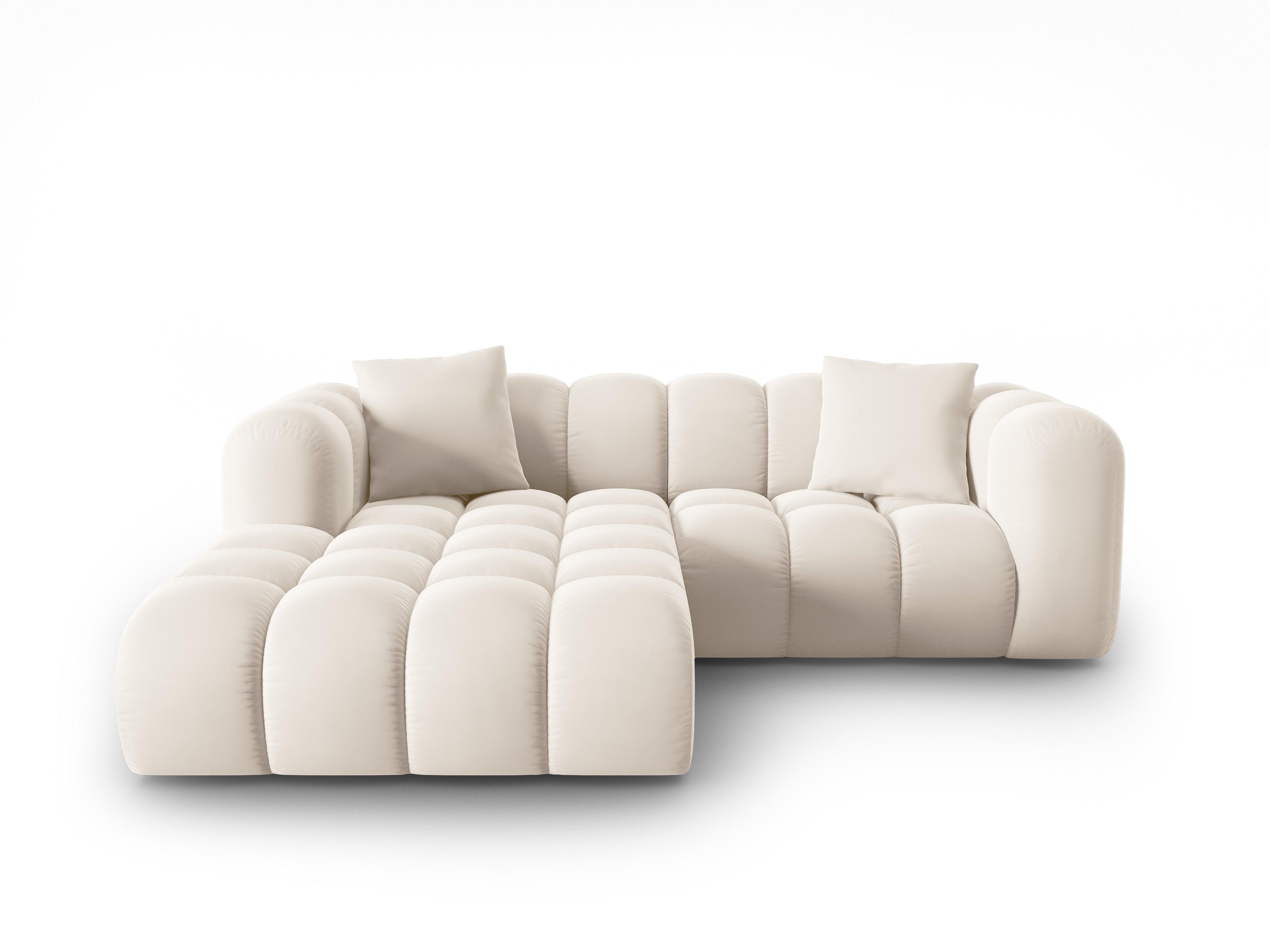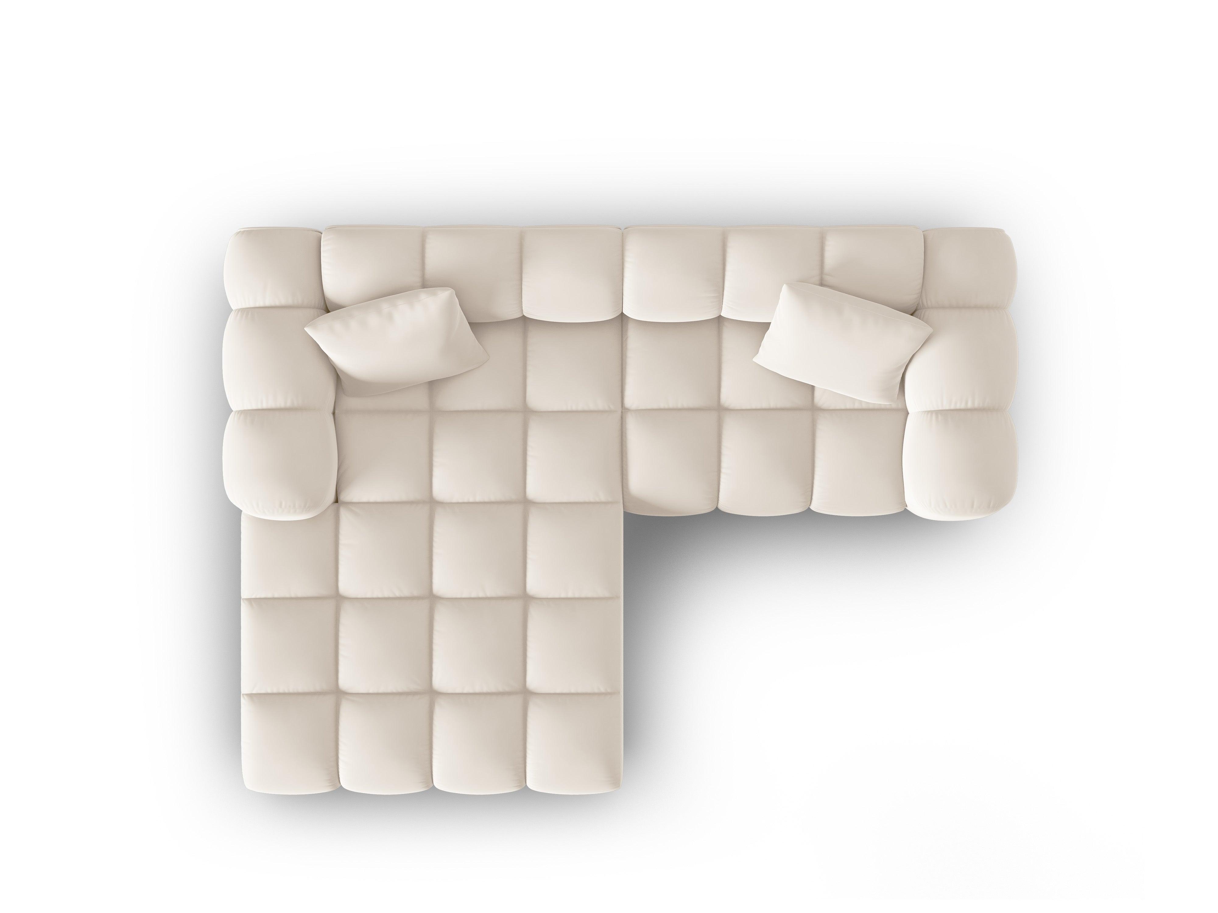 Ecke Es zeigt nicht nur ein attraktives Aussehen, sondern strahlt auch einen gemütlichen Charakter aus. Der Samtstoff, der durch außergewöhnliche Haltbarkeit und Weichheit gekennzeichnet ist, verleiht dem Ganzen ein luxuriöses Finish. Möbel aus der begrenzten Halley -Kollektion sind ein effektives Sitzgelände, das einen subtilen Akzent zeitloser Eleganz in das Innere einführt.