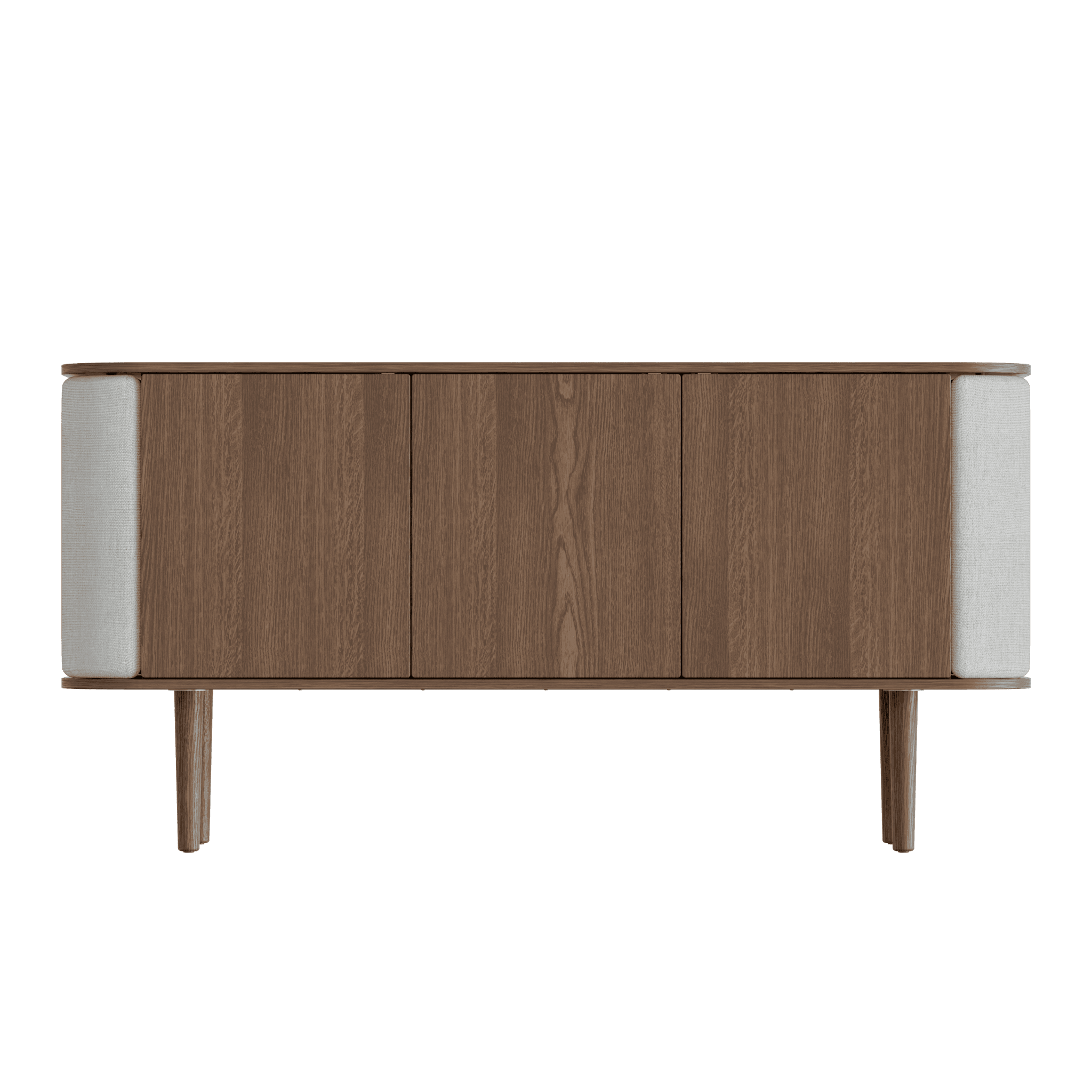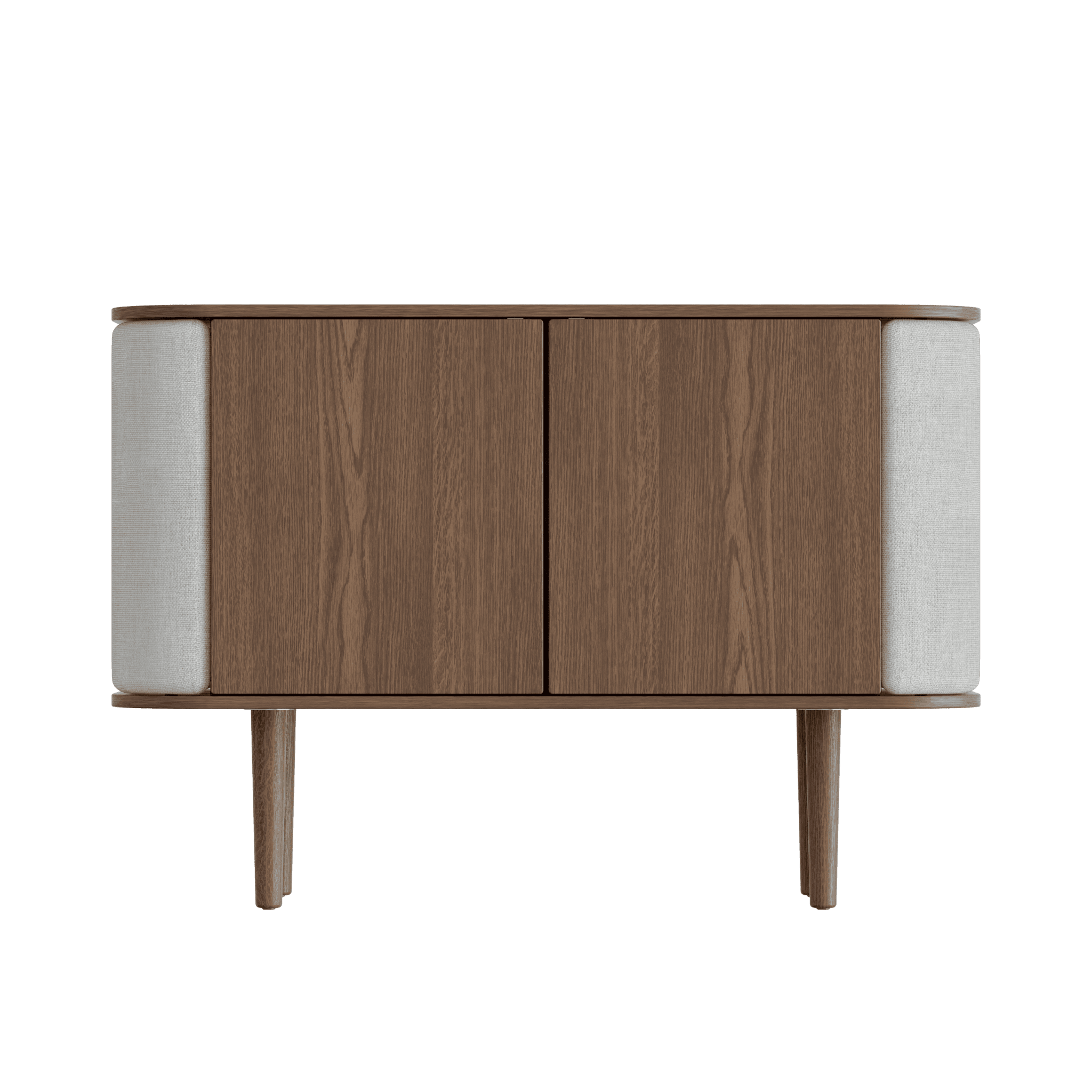 Kommode Schätze strömen einen nordischen Stil. Sein Gehäuse besteht aus furniertem Eichenholz, und die gekrümmten Seiten des Kabinetts haben eine einstellbare Abdeckung, die Schätzen einen angenehmen, weichen Touch verleiht.