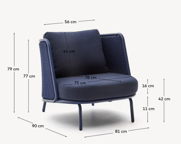 Der Gartenstuhl Sedalis ist eine Kombination aus Eleganz, Modernität und Umweltschutz. Sein mit Polyester-Pulverfarbe beschichteter Aluminiumrahmen bietet Beständigkeit gegen UV-Strahlung und Witterungseinflüsse und ist daher perfekt für den Einsatz im Innen- und Außenbereich geeignet. Rückenlehne und Sitzfläche bestehen aus handgewebtem, sonnenbeständigem Seil, das dem gesamten Stück eine leichte und moderne Optik verleiht. Das Set enthält abnehmbare, wasserdichte Kissen aus 95 % recyceltem Material, was die Möbel zu einer bewussten pro-ökologischen Wahl macht.