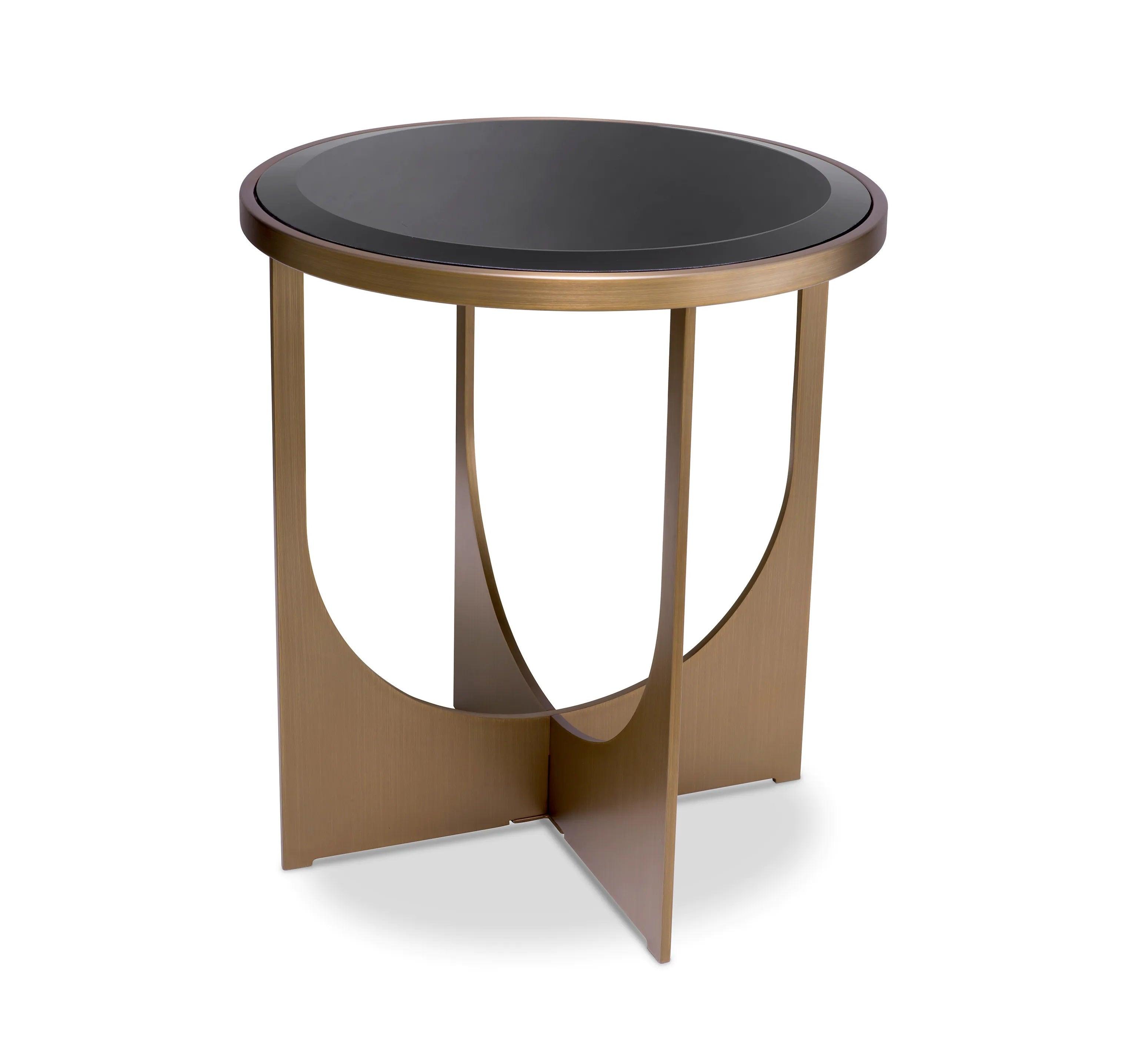 Messing Table Eleganz ist, wie der Name schon sagt, die Quintessenz eines raffinierten Stils. Er verwechselt mit seinem eleganten Aussehen, dessen Basis ein glänzendes Finish von gebürstetem Messing ist. Das geschliffene schwarze Glasoberteil ist nicht nur praktisch, sondern fügt auch Tiefe und Klasse der gesamten Struktur hinzu. Trotz seiner kompakten Konstruktion kann der Eleganztisch Aufmerksamkeit erregen und zum Mittelpunkt eines jeden Raums werden.