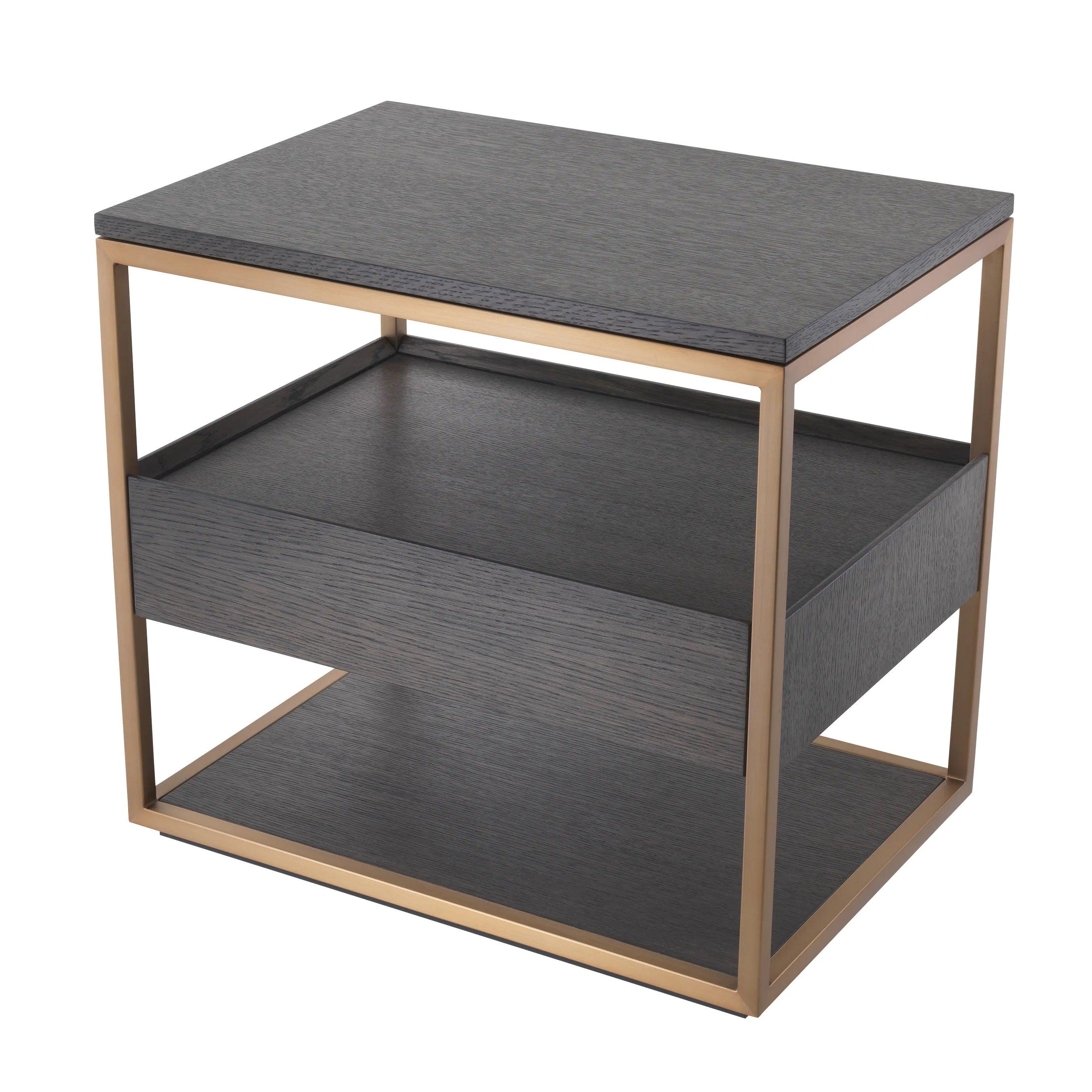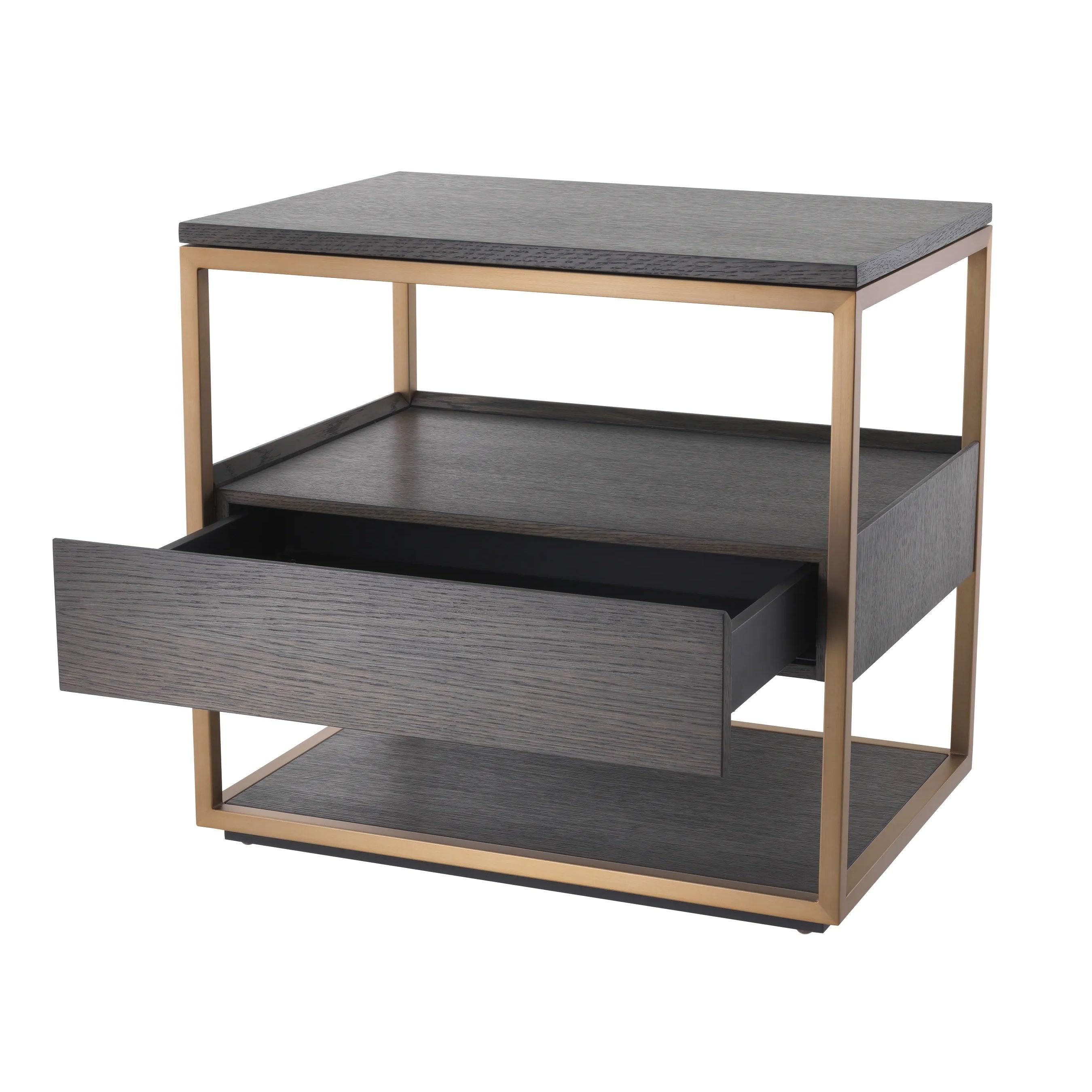 Die Kollision der Klassiker mit der Moderne manifestiert sich in der Form Seitentisch, der die Geschichte des Designs verbirgt. Seine Frames aus gebürstetem Messing vibrieren mit Verweisen auf die Art -Deco -Ära und fügen eine kleine Vintage -Atmosphäre hinzu. In der Zwischenzeit bringen die Regale von Eichenfurnier in einem Schatten von Mokka natürliche Schönheit und Wärme, im Gegensatz zu kühlerem Messing und hinzugefügten Tiefe der gesamten Struktur.