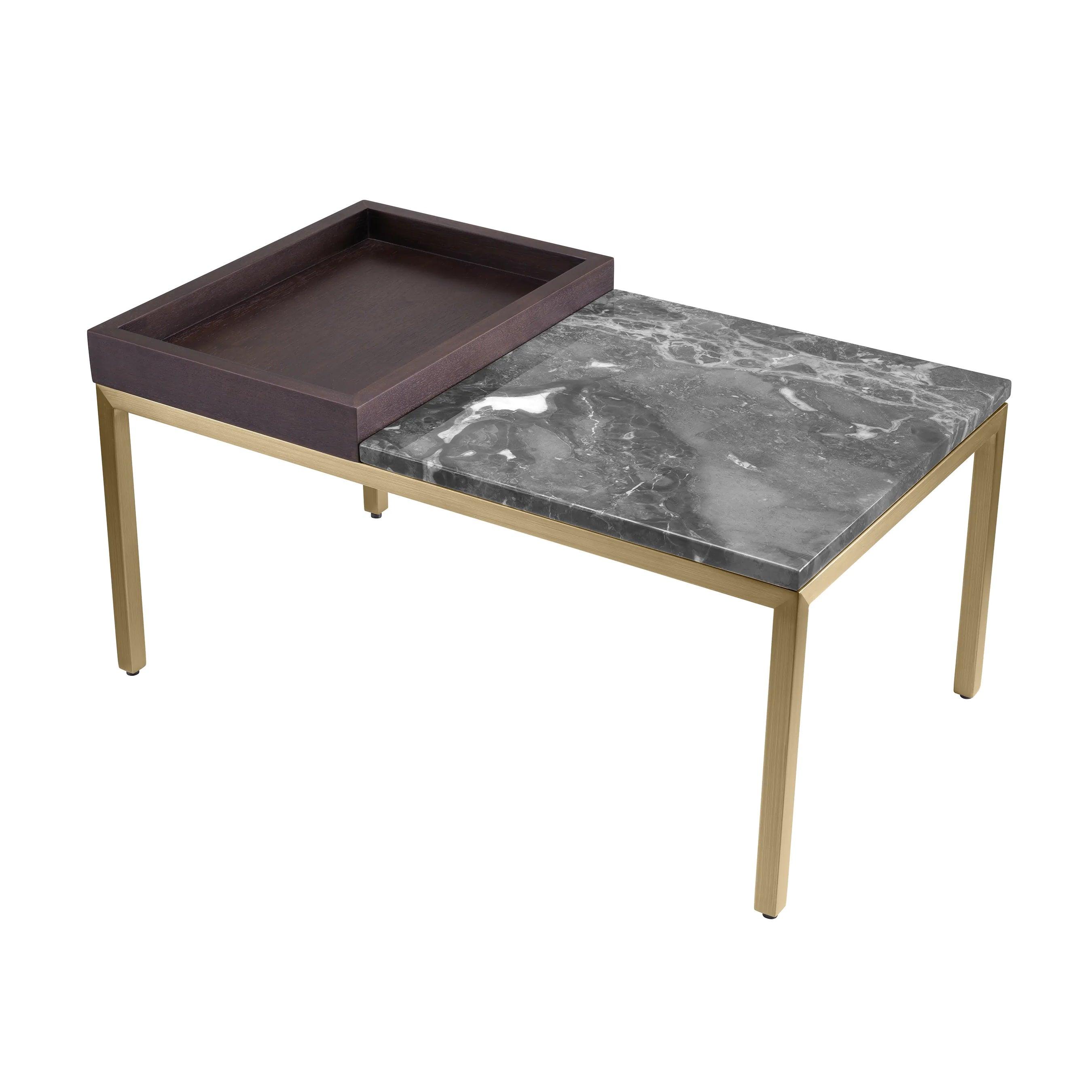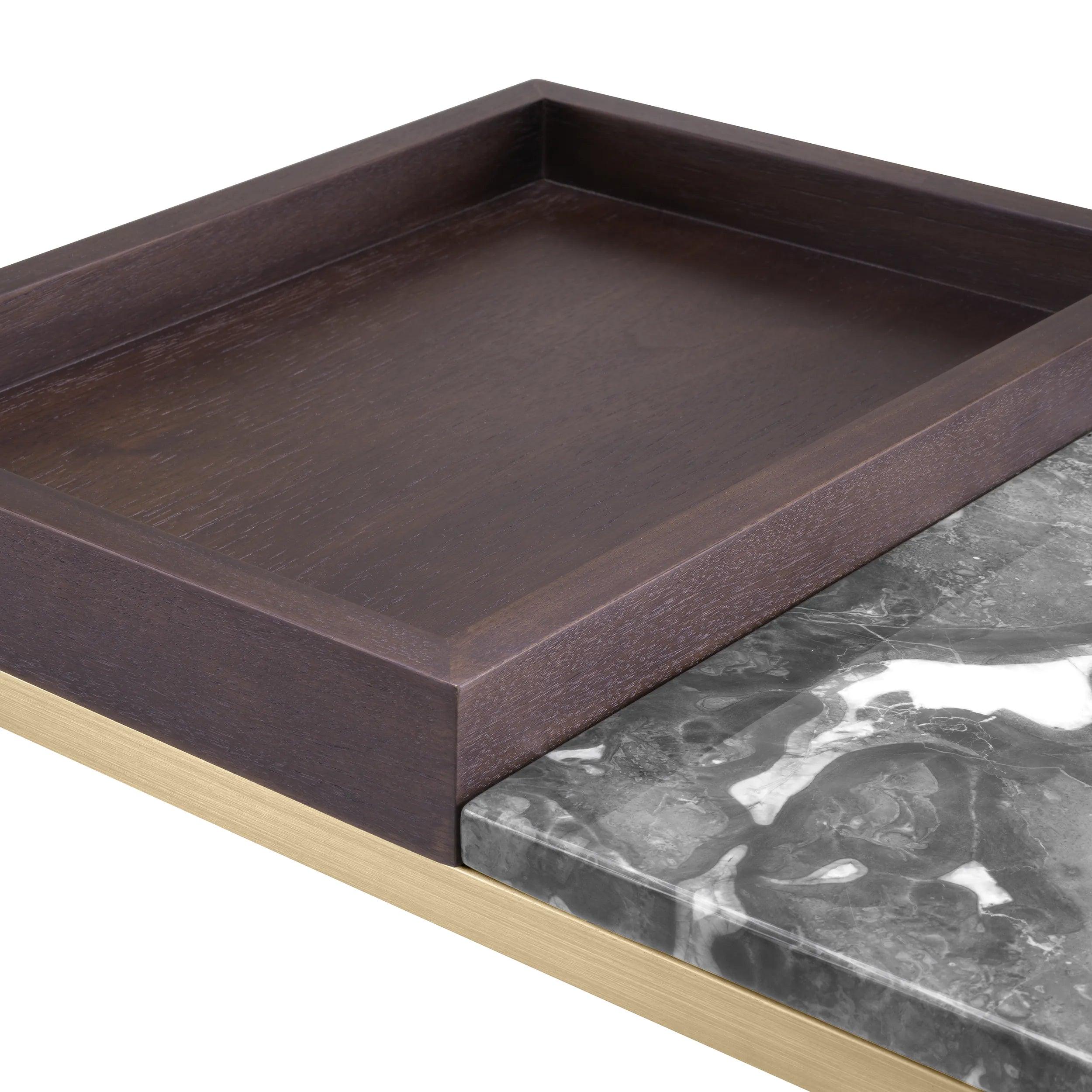 Stellen Sie sich vor, Sie berühren die kühle Oberfläche von grauem Marmor und spüren ihre homogene Textur, die nur durch versehentliche Venen unterbrochen wird. Jede Tabelle bringt die Geschichte von Millionen von Jahren von Fossilien und geologischen Prozessen mit sich. Das Messing Finish verleiht Eleganz und betont die Fülle von Details, während die Eichenfurnierschale Wärme und Erde verleiht und den perfekten Hintergrund für Ihre Lieblingsobjekte oder -getränke erzeugt.