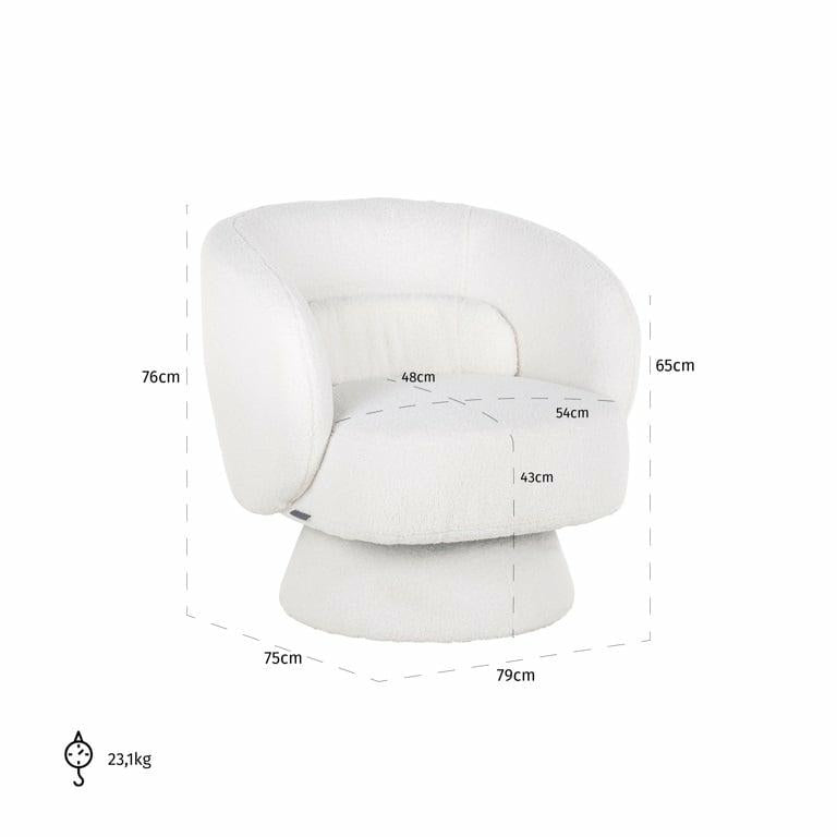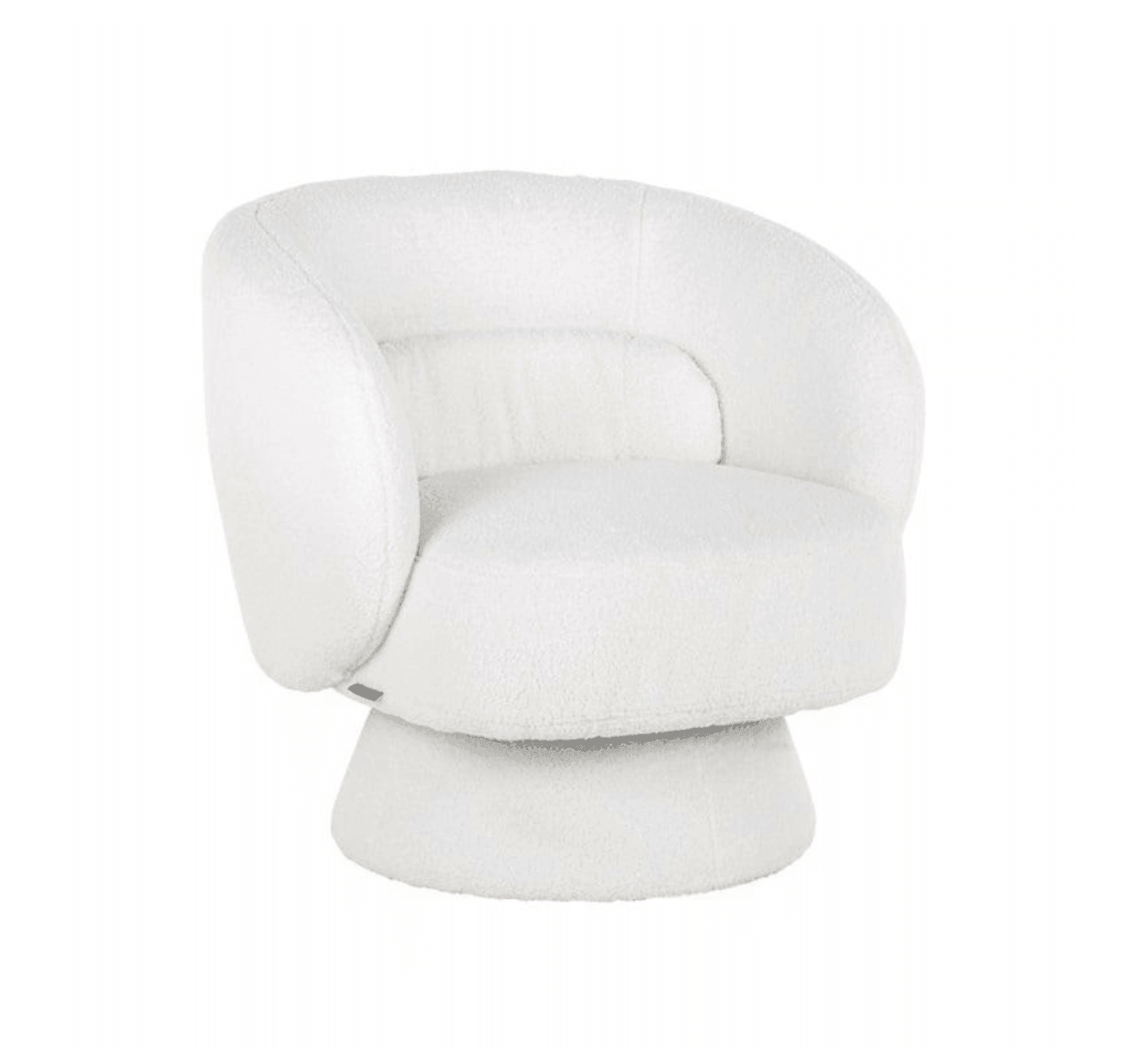 Drehstuhl Senna in Weiß ist ein Synonym für Luxus und Modernität. Es ist ein Möbelstück, das nicht nur die Funktion des Drehens bietet, sondern auch mit einer außergewöhnlichen Verarbeitung begeistert. Die gesamte Oberfläche ist mit einem schönen, weißen Furry-Stoff bezogen, der einen visuellen Effekt erzeugt, der die Blicke anzieht und dem Raum Eleganz verleiht. Der Stuhl SENNA ist eine wahre Ode an Komfort und Stil.