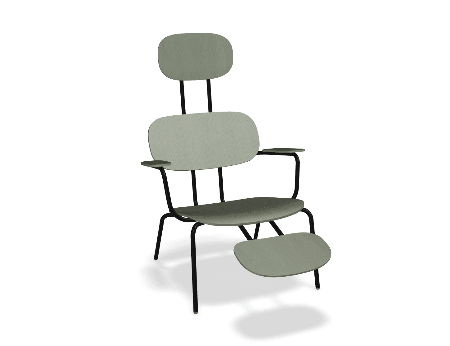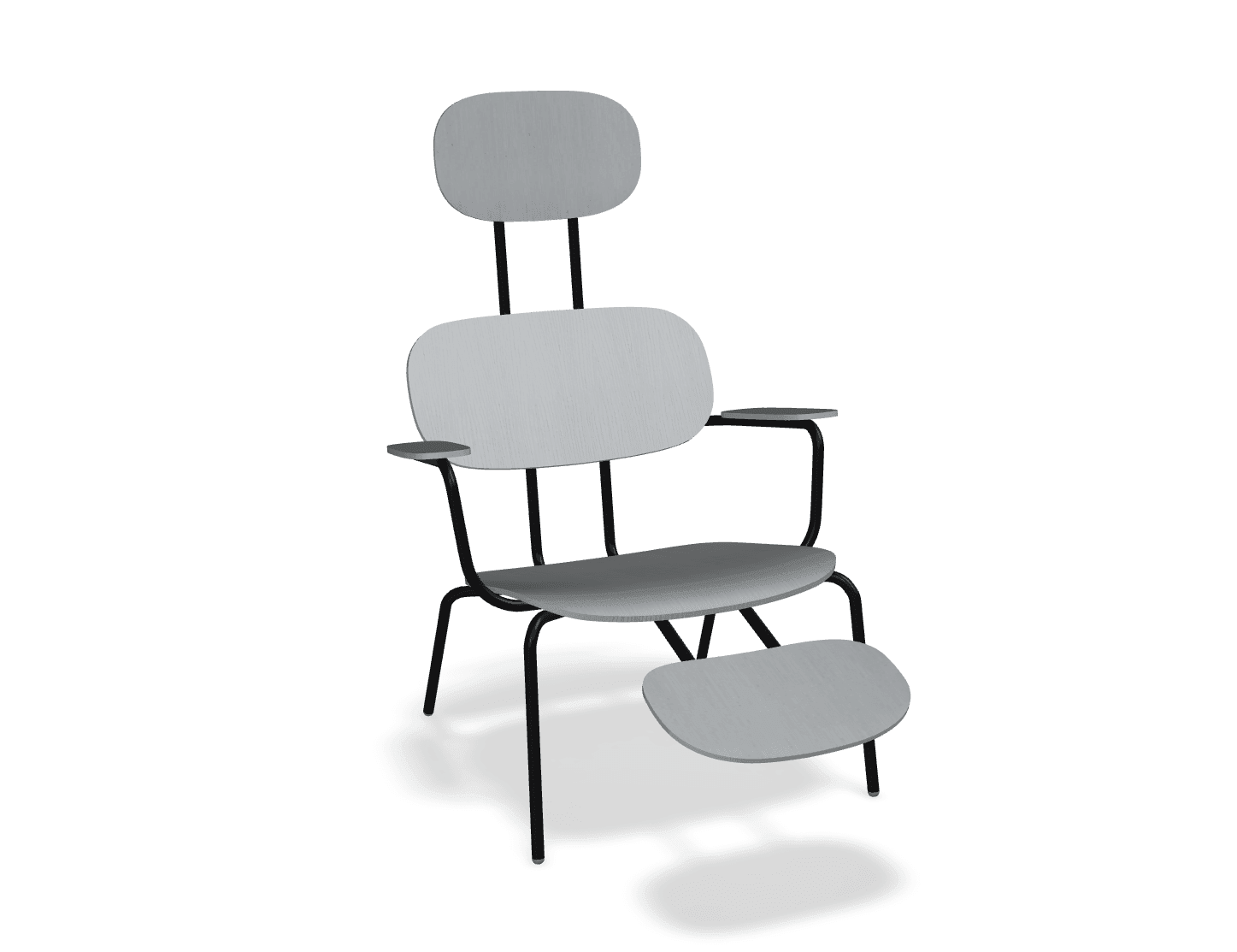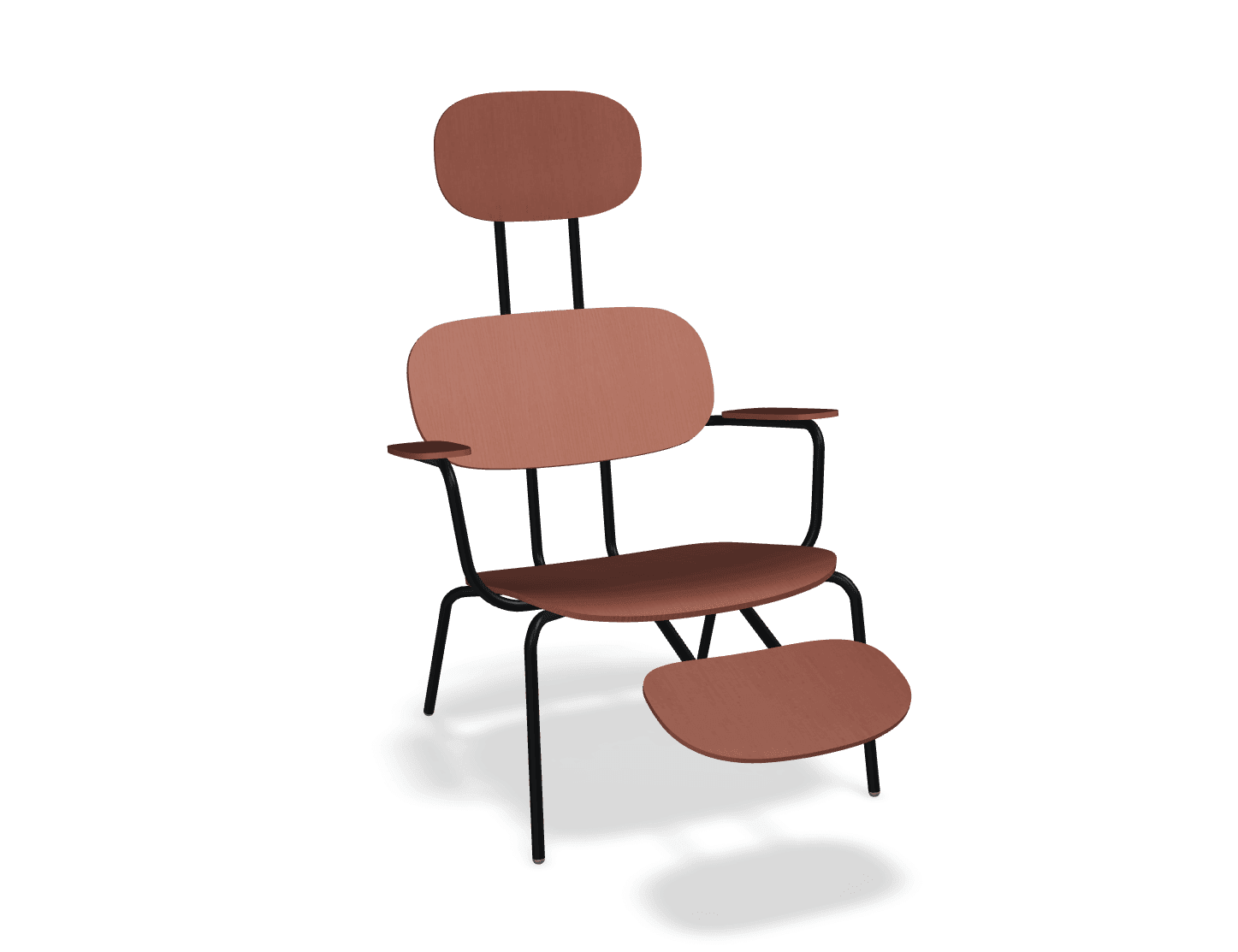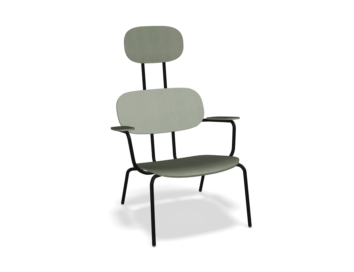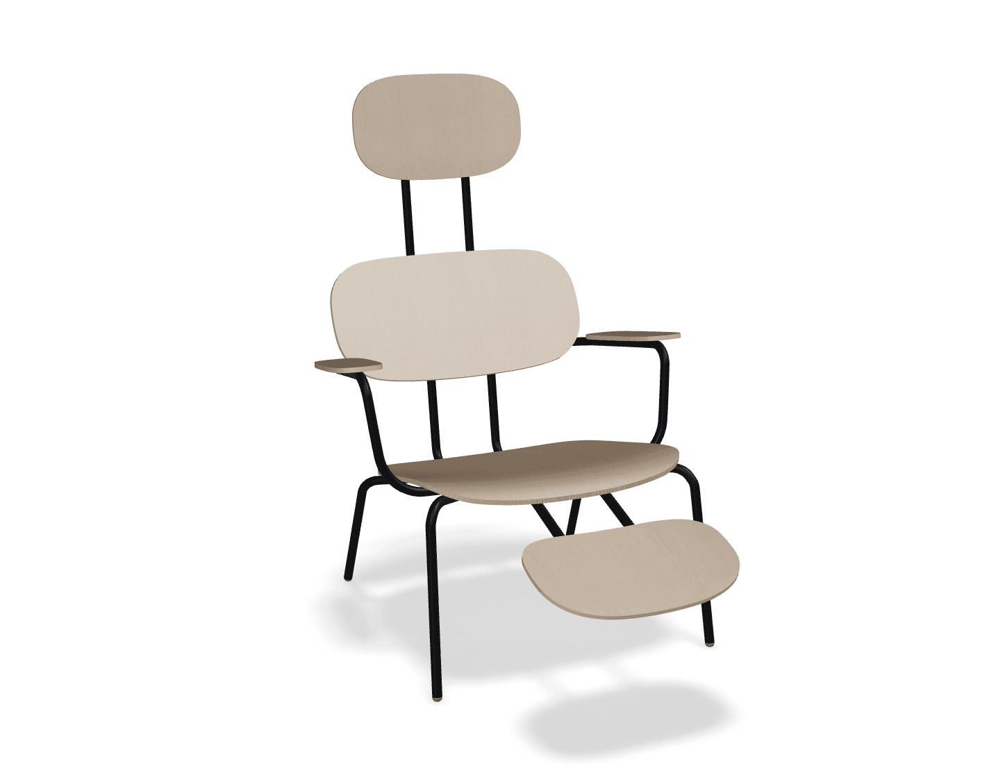 Ein tiefer Sitz, der in einem Winkel von 12 ° geneigt ist und von 25 ° und ergonomischen Armlehnen breit zurückkippt ist. Die Sperrholzversion erleichtert es einfacher, sauber zu bleiben, was den Sessel zu einer praktischen Wahl für öffentliche Räume und Entspannungszonen zu Hause macht.