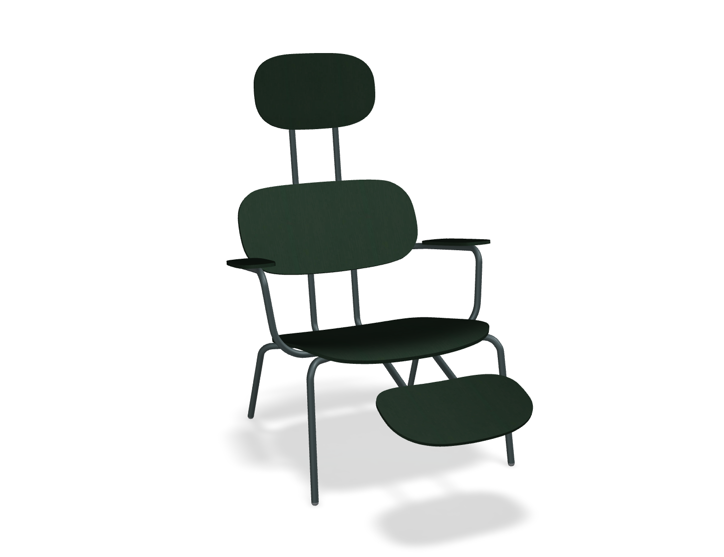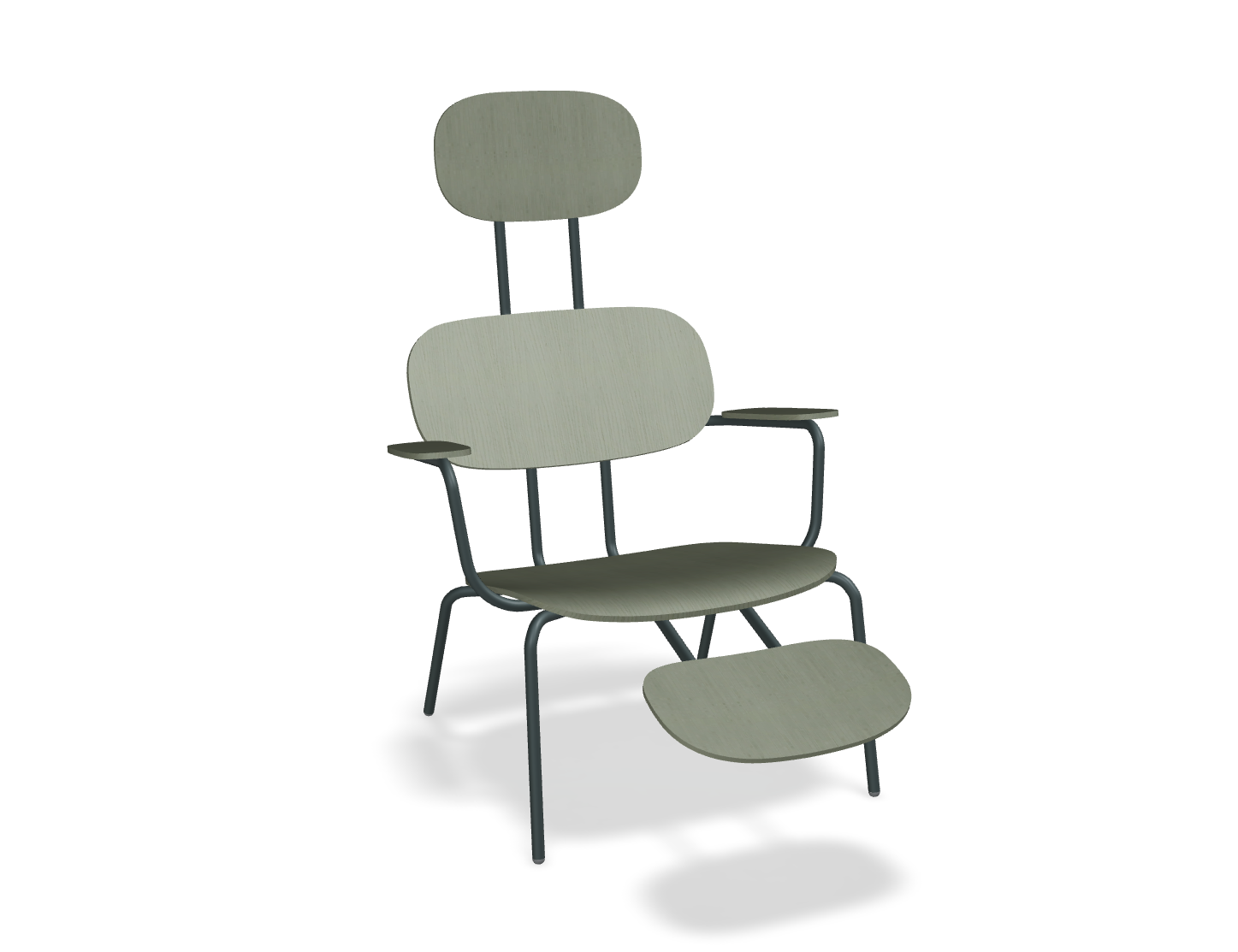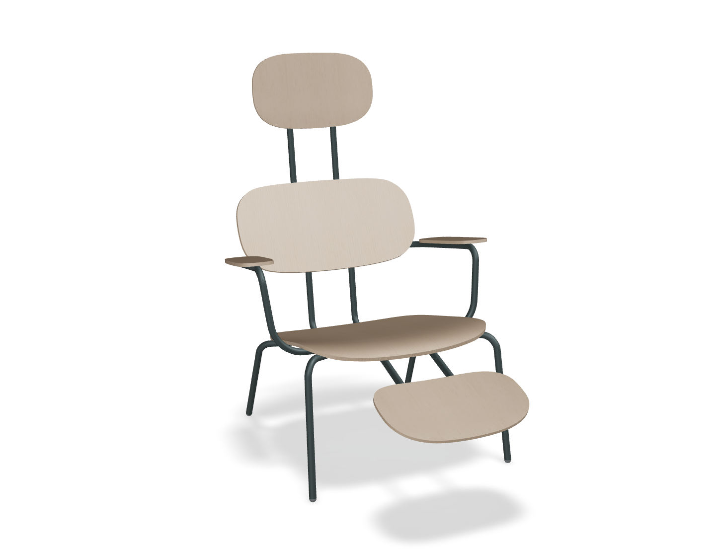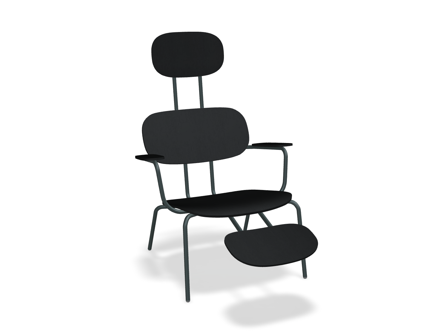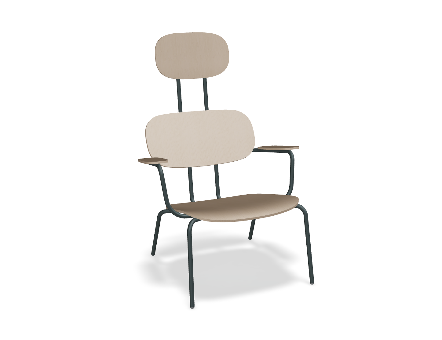 Ein tiefer Sitz, der in einem Winkel von 12 ° geneigt ist und von 25 ° und ergonomischen Armlehnen breit zurückkippt ist. Die Sperrholzversion erleichtert es einfacher, sauber zu bleiben, was den Sessel zu einer praktischen Wahl für öffentliche Räume und Entspannungszonen zu Hause macht.