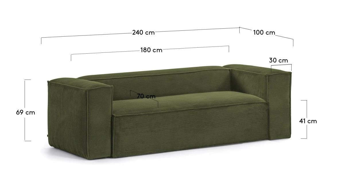 Sofa 3-Personen Green Cord Block
