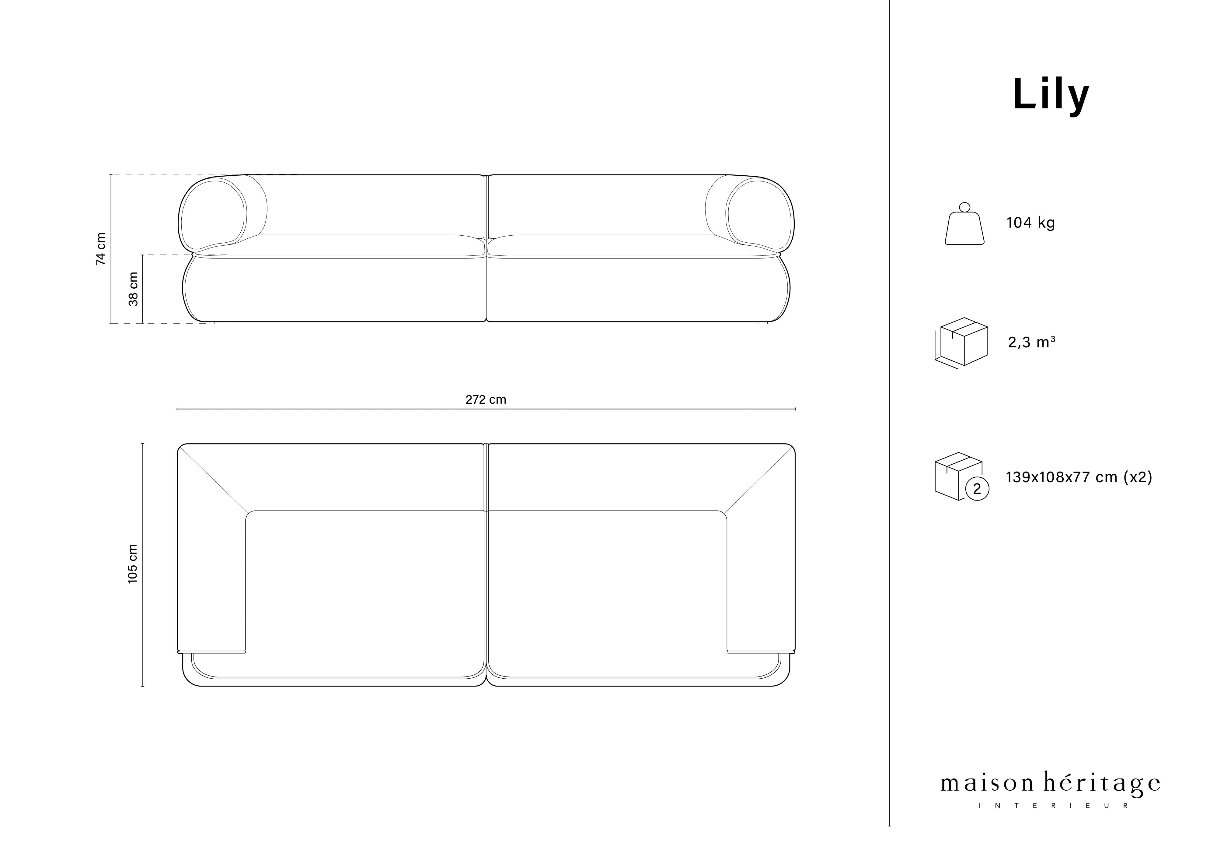Die tiefen Sitzflächen sind elastisch und außergewöhnlich bequem. Zarte Steppungen und Nähte betonen den klassischen Charakter des Designs. Dank der niedrigen und breiten Silhouette Sofa Lily bringt es ein wenig Gemütlichkeit und Wärme in den Raum. In der Kollektion sind verschiedene Kombinationen von Sofas und Ecksofas sowie ein Chaiselongue und ein großer Pouf erhältlich, mit denen Sie eine einzigartige Einrichtung schaffen können.