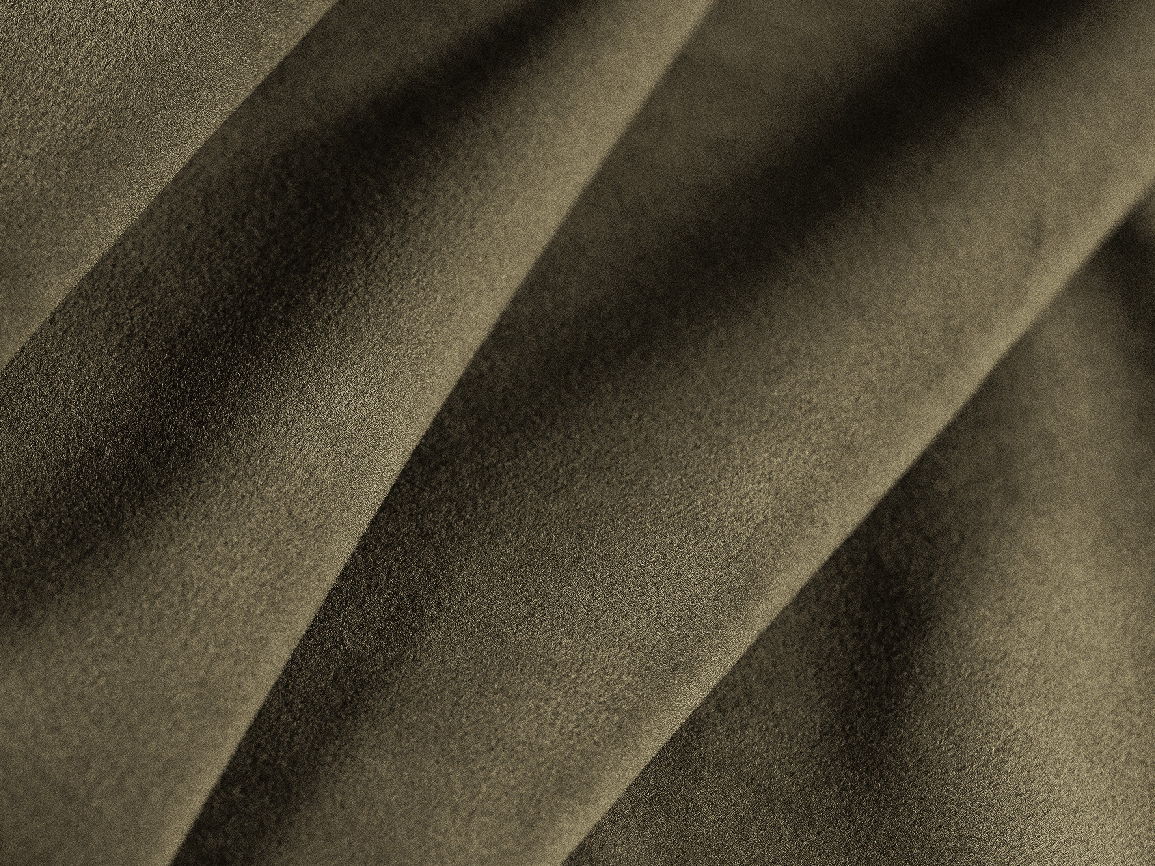 Materiały: Welur Bluvel - Jedwabista i niezwykle miękka w dotyku tkanina tapicerska o delikatnym połysku doskonale imitująca aksamit. Bardzo odporna na ścieranie, co znacznie zmniejsza ryzyko uszkodzenia (test Martindale’a: 50 000, 320 g/m², skład: 100% poliester). Ze względu na dłuższe włosie odczucie percepcji koloru może sie zmieniać w zależności od kąta padania światła